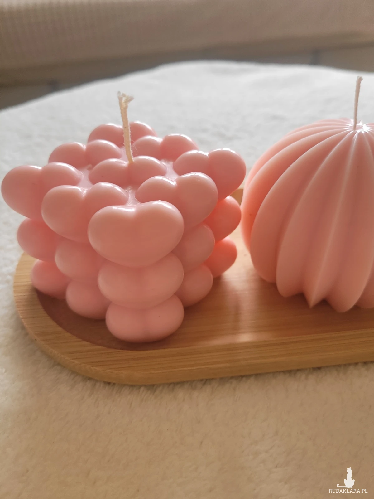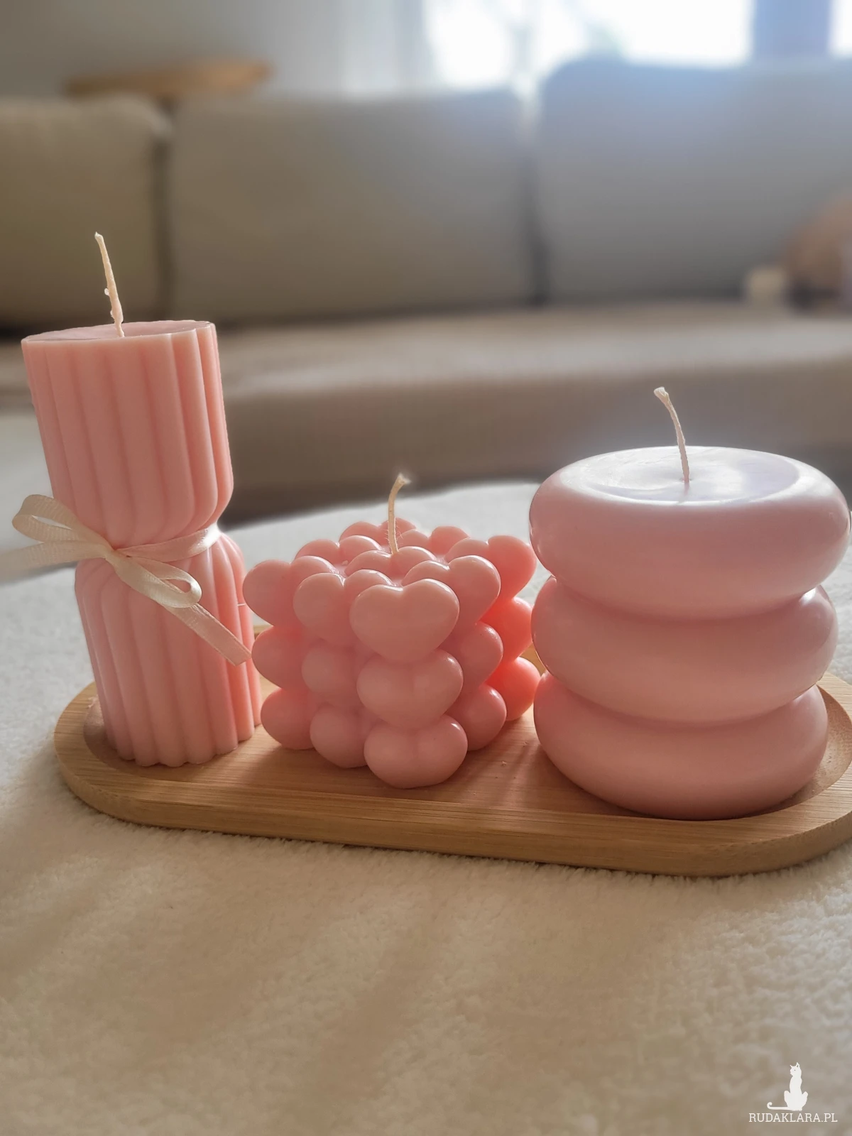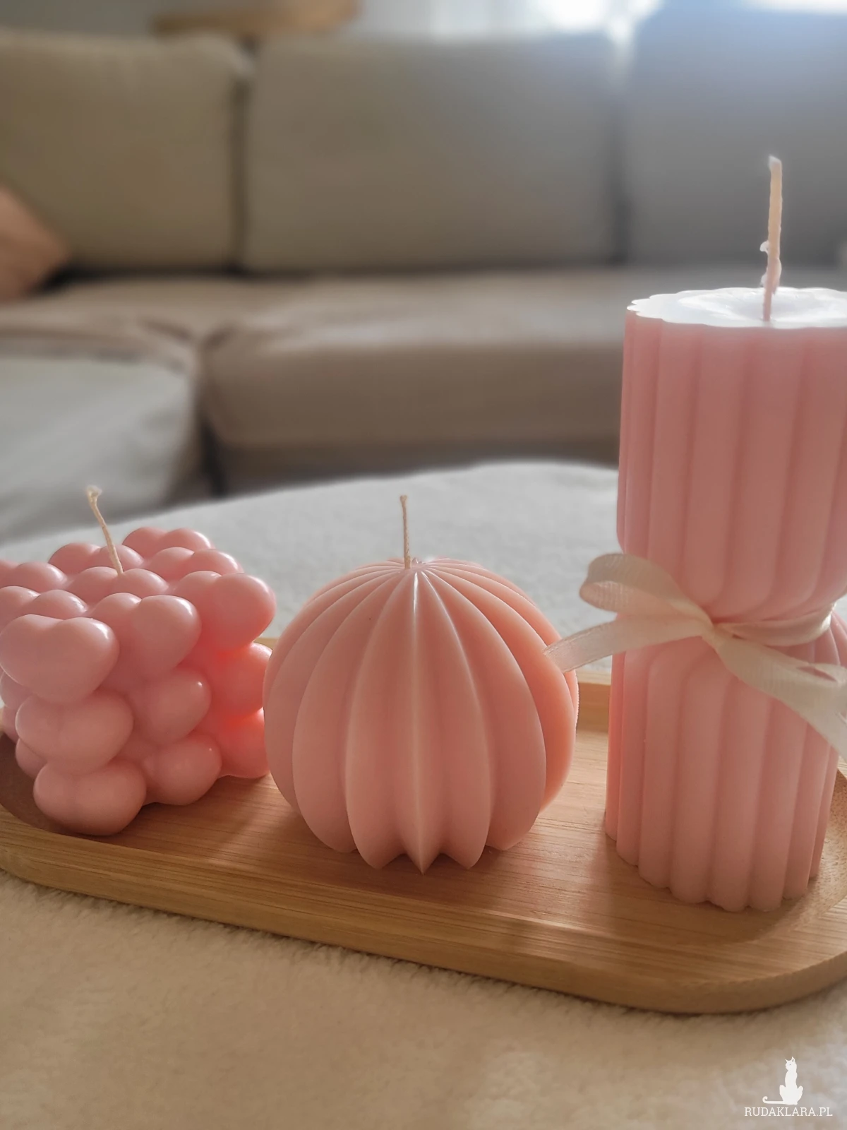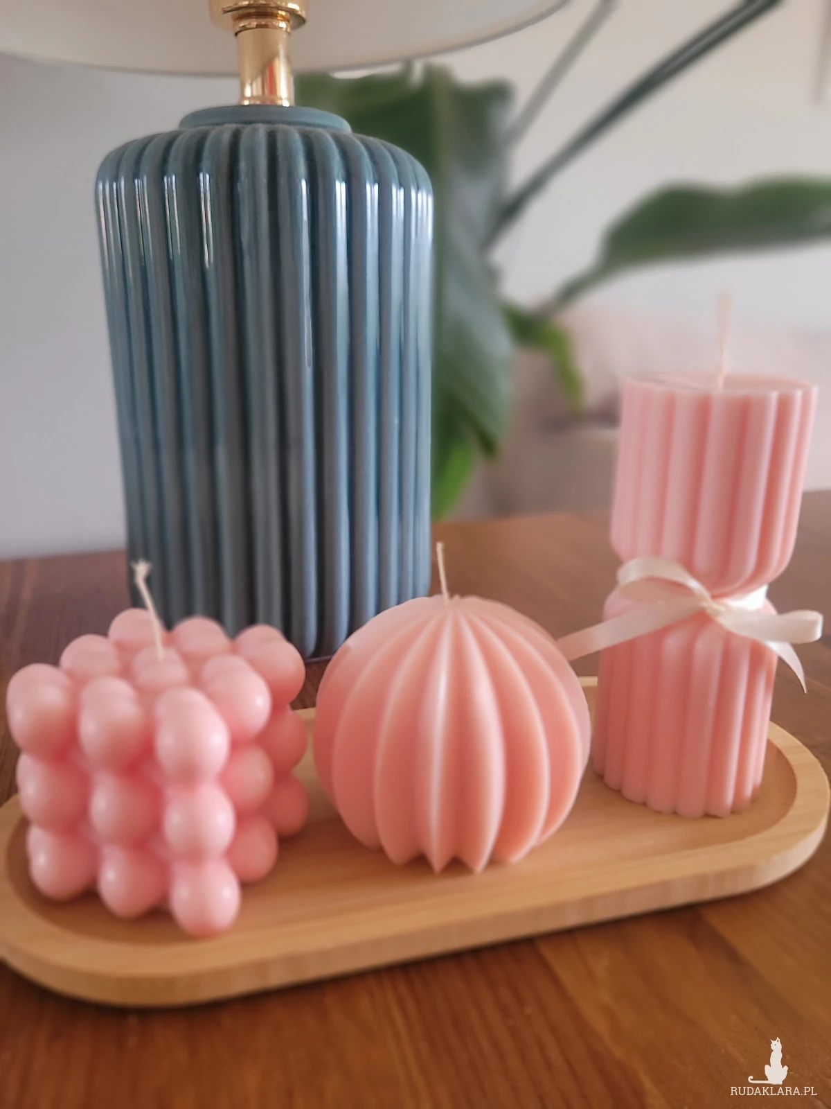 Pastelowe kolor wosku ładnie kontrastują z drewnem.