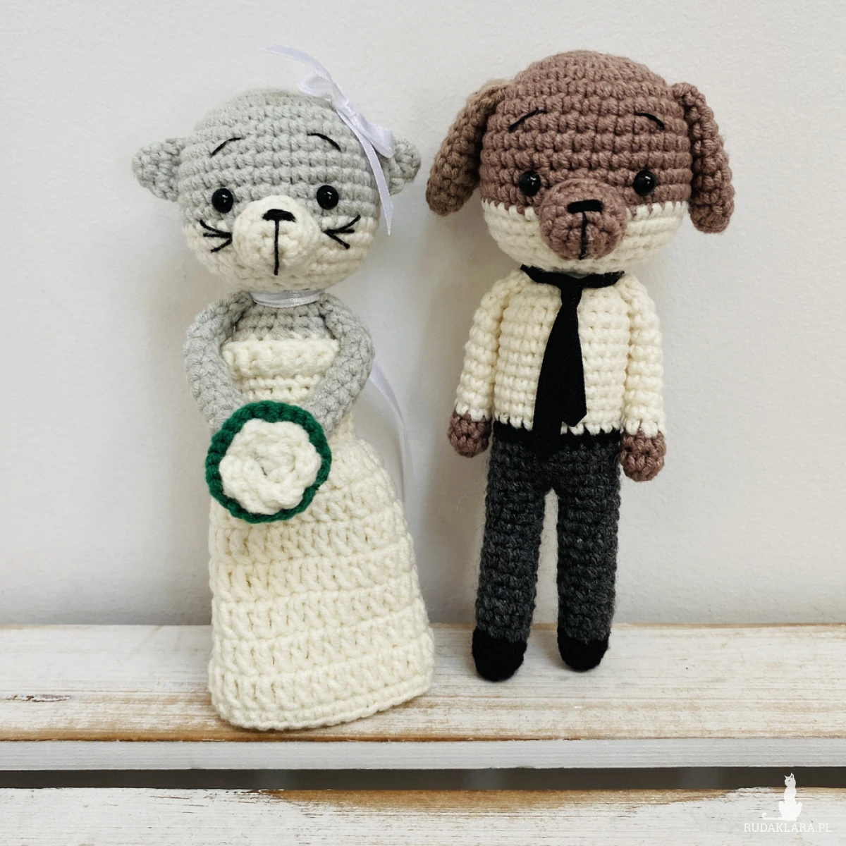 Młoda Para – pies i kot, maskotki ręcznie robione na szydełku – idealny prezent ślubny