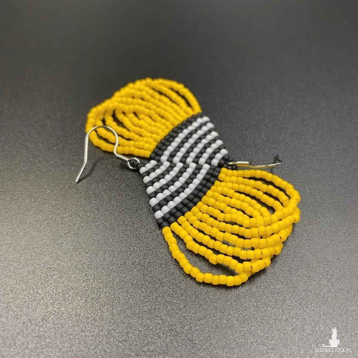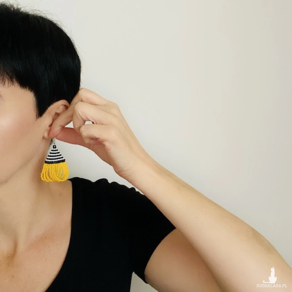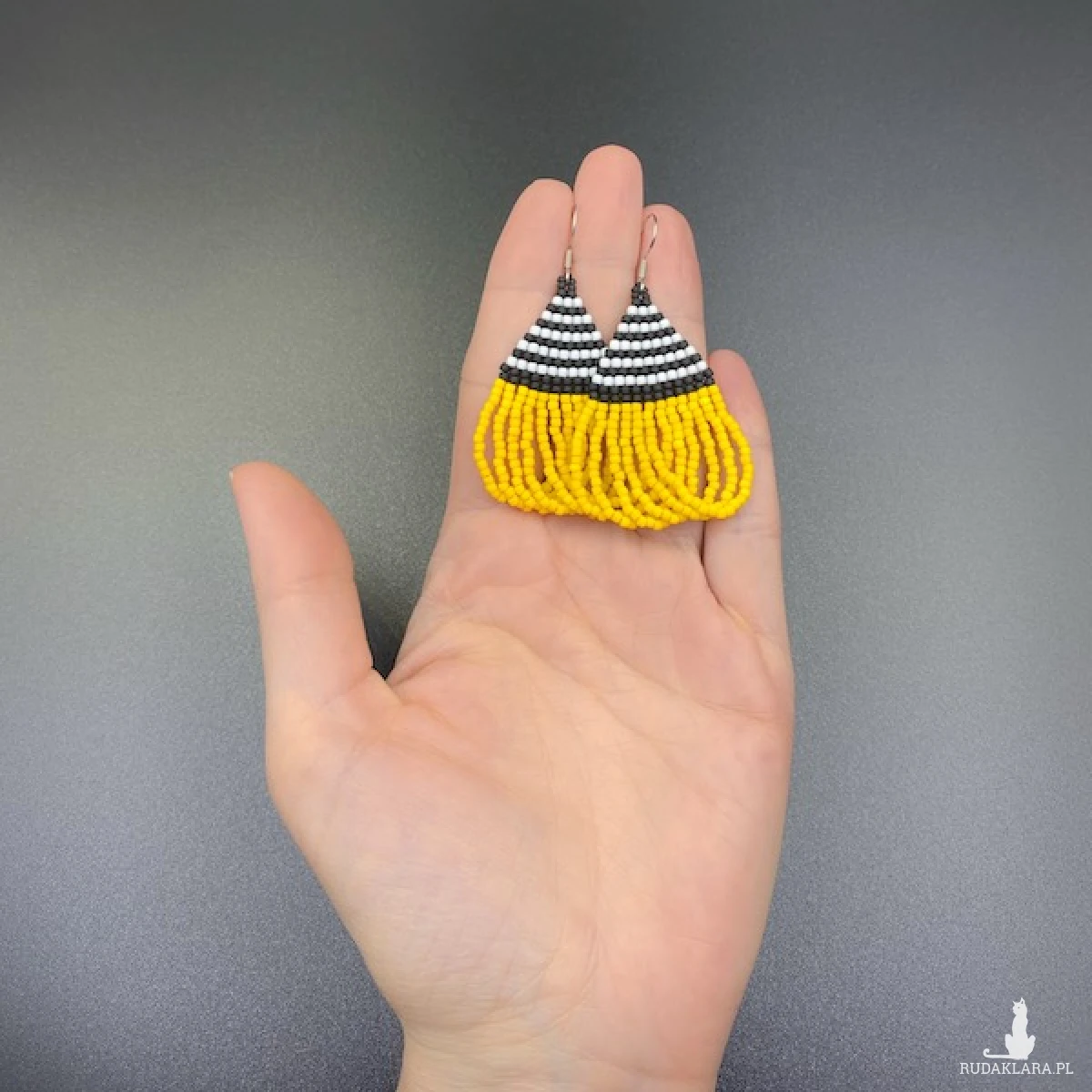 Koralikowe kolczyki wykonane w górnej części ściegiem cegiełkowym, dolna część to ozdobne pętelki. W 100% utkane ręcznie z koralików TOHO 11. Każdą pracę wykonuję bardzo starannie.