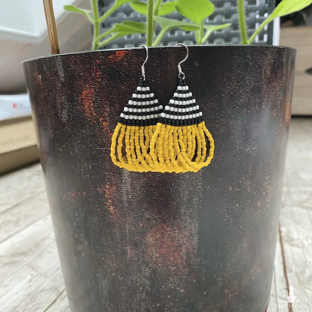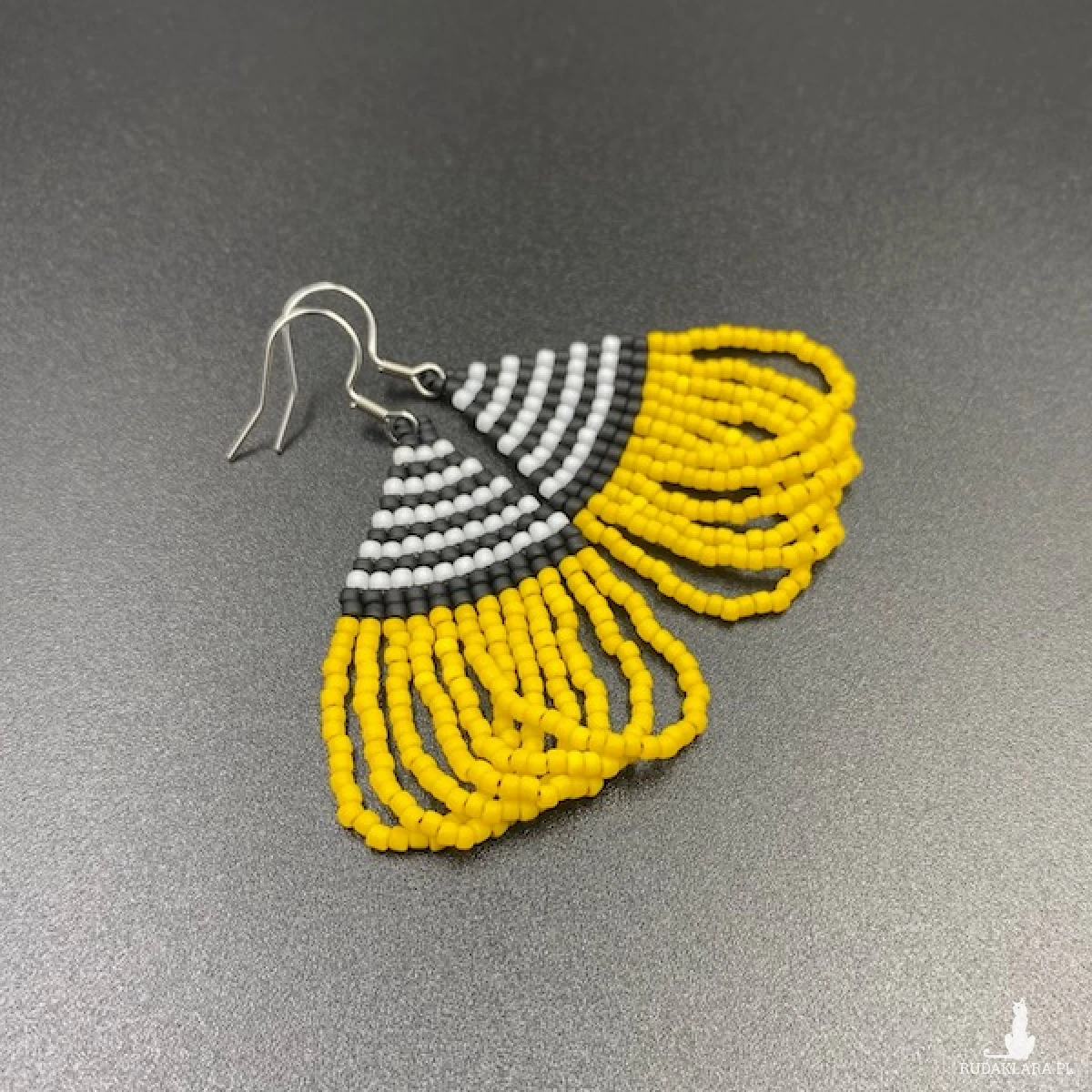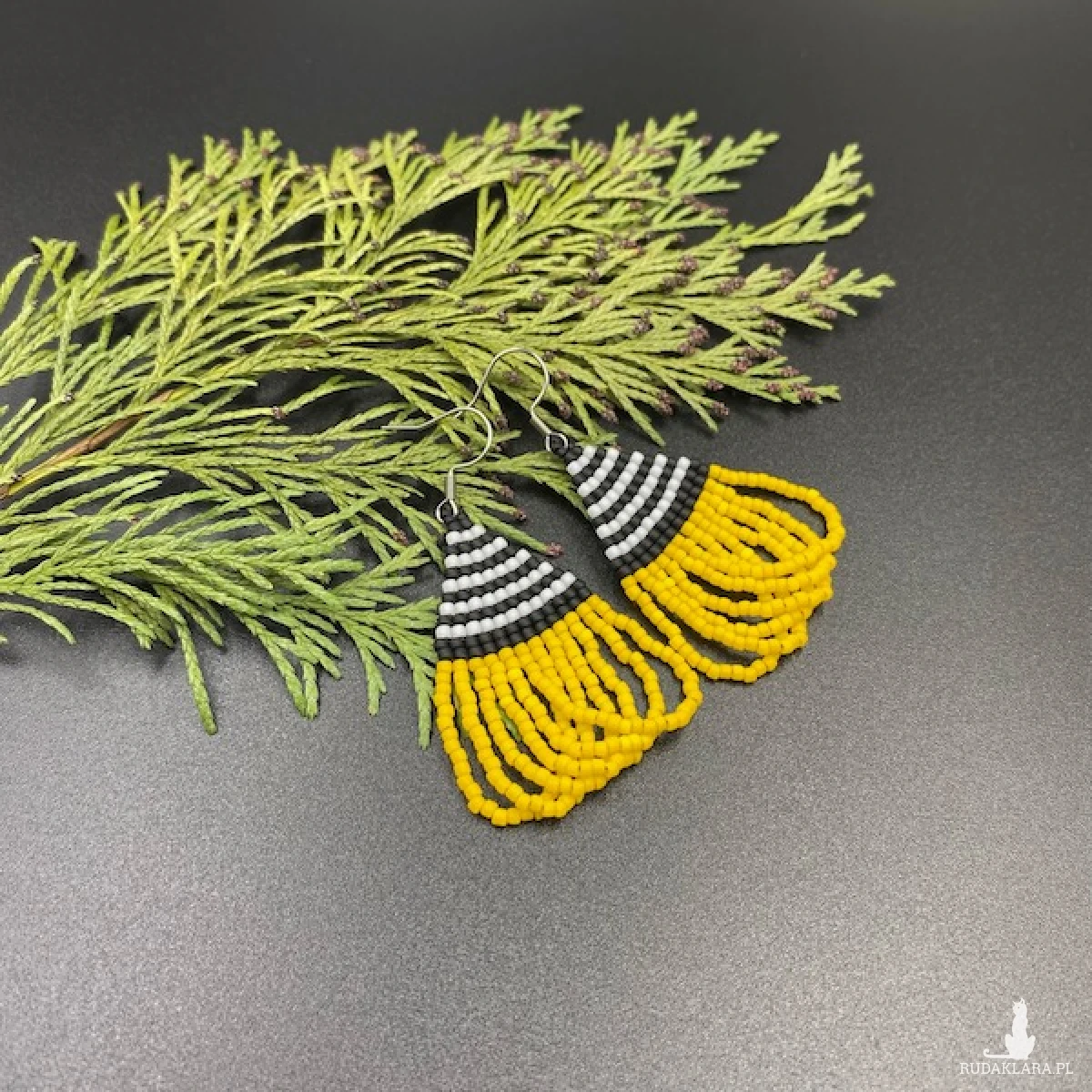 Koralikowe kolczyki wykonane w górnej części ściegiem cegiełkowym, dolna część to ozdobne pętelki. W 100% utkane ręcznie z koralików TOHO 11. Każdą pracę wykonuję bardzo starannie.