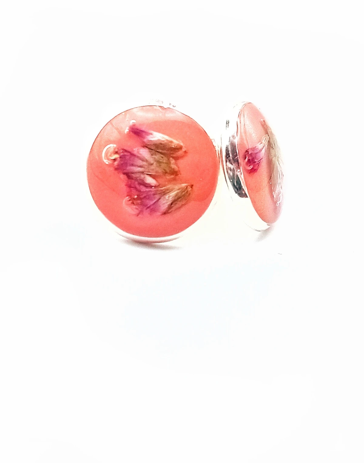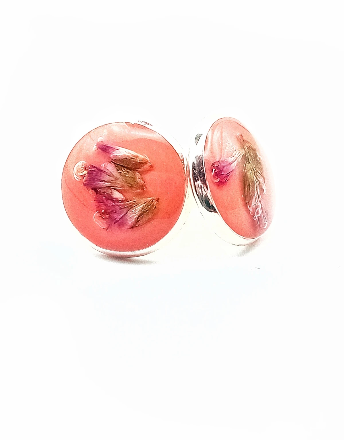 🔹 Materiał: Stal nierdzewna (antyalergiczna) + żywica UV z zatopionymi, suszonymi kwiatuszkami zatrawianu