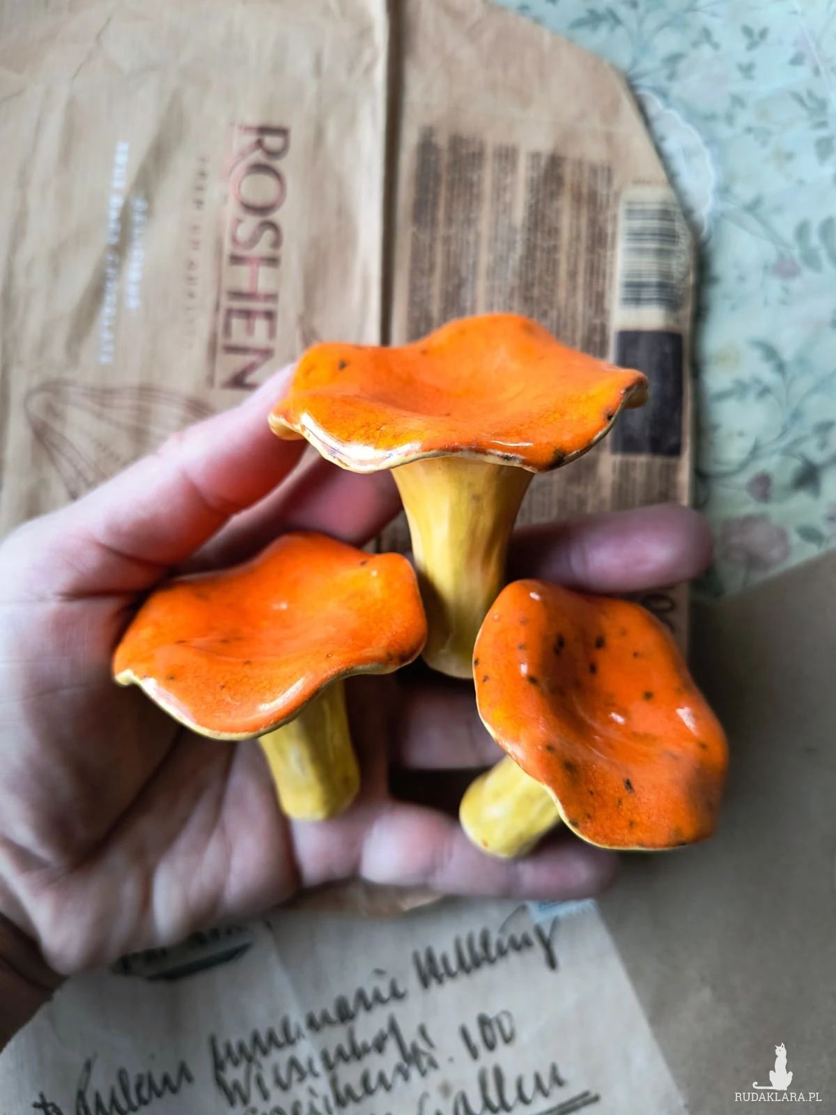 Zestaw 3 grzybków ceramicznych wykonanych z gliny szamotowej, wypalonych na biskwit, a następnie szkliwionych w temp. ok 1260 stopni C. wysokość od 6 cm x 4 cm oraz 7 cm x 7,5 cm. Serdecznie polecam grzyby jako dodatek do kompozycji doniczkowych lub lasów w słojach. Możliwość zakupu grzybków również pojedynczo.
