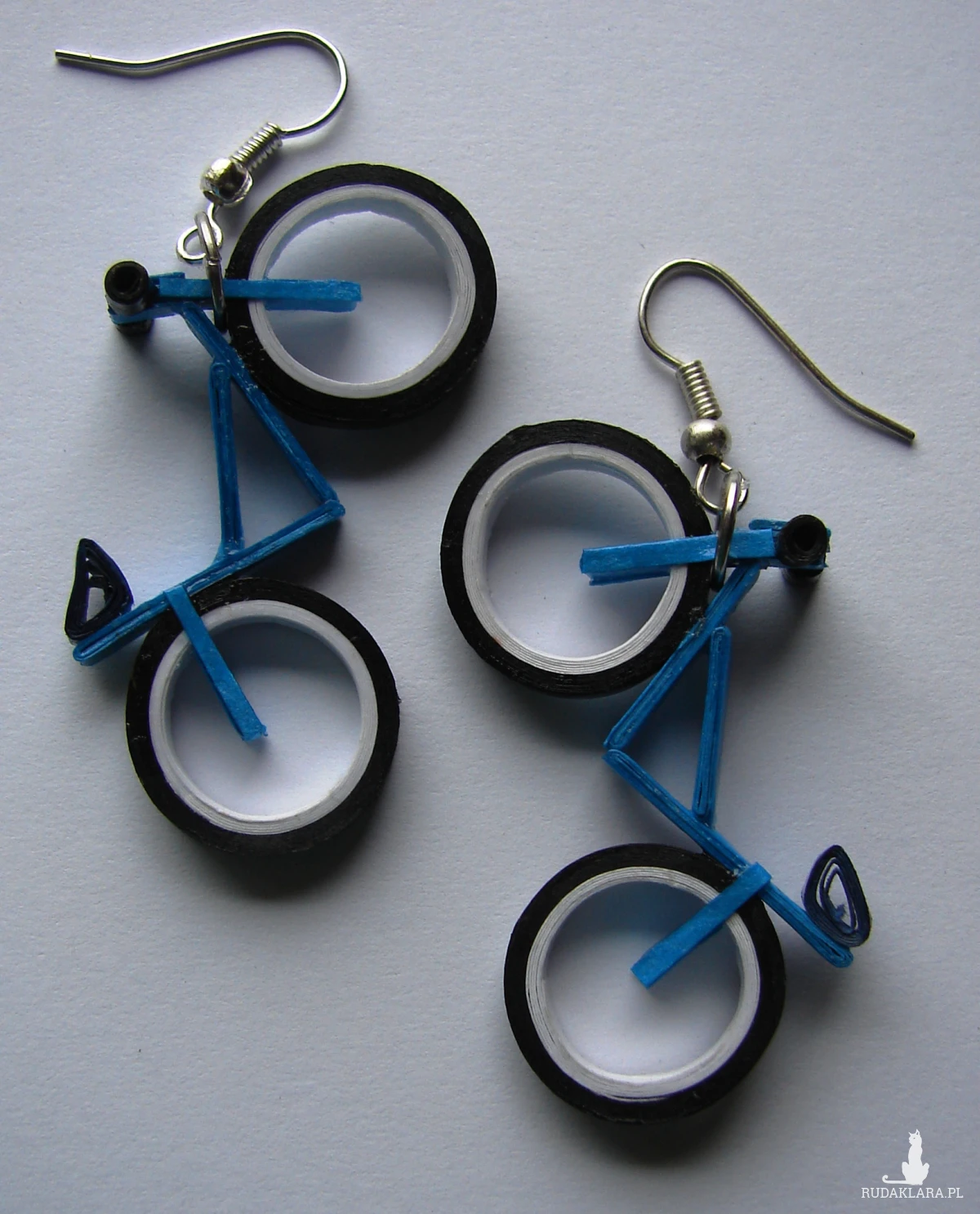 Kolczyki wykonane ręcznie z papieru metodą quilling, zabezpieczone i utwardzone lakierem bezbarwnym, więc nie chłoną wilgoci atmosferycznej.