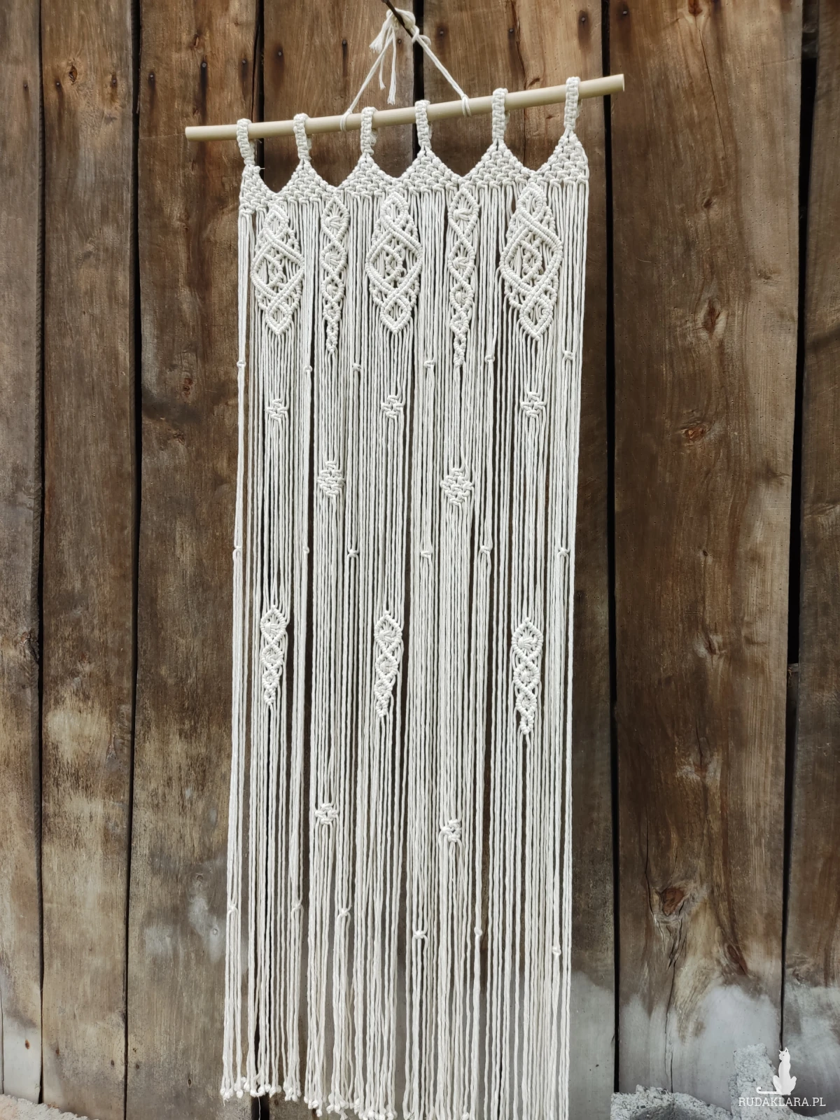 Sprzedam piękną, ręcznie wykonaną firankę w stylu Boho wyplecioną ze sznurka 3 mm skręcanego w kolorze naturalnym. Firankę można wypleść w dowolnym rozmiarze można zawiesić na karnisz na oczkach.