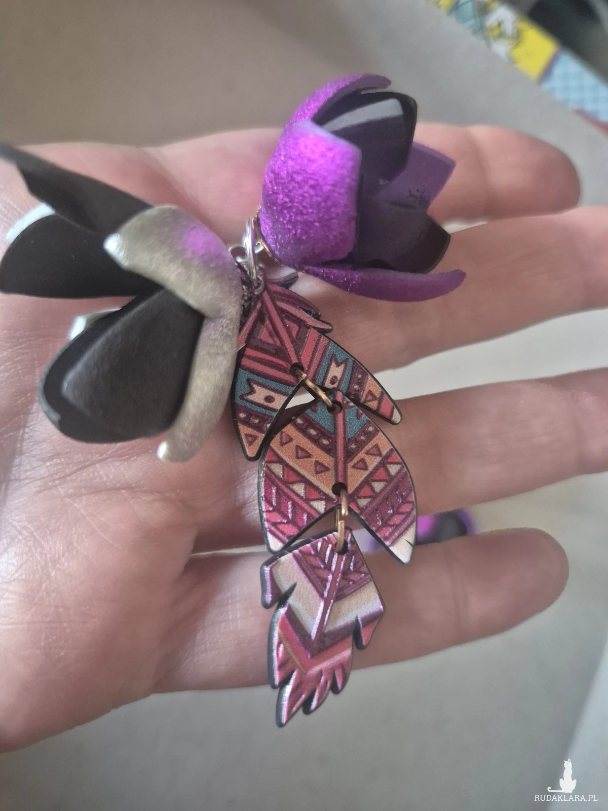 Kolczyki kolorowe leciutkie kwiaty w odcieniach fioletu polecam