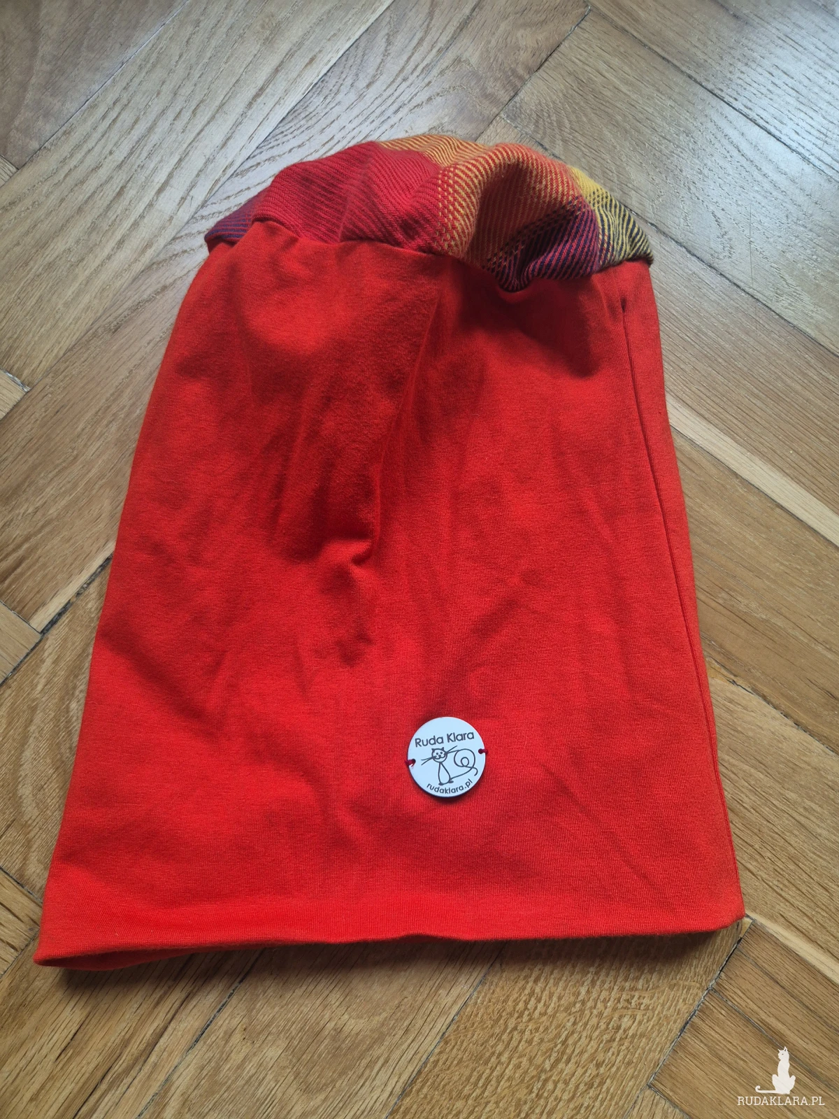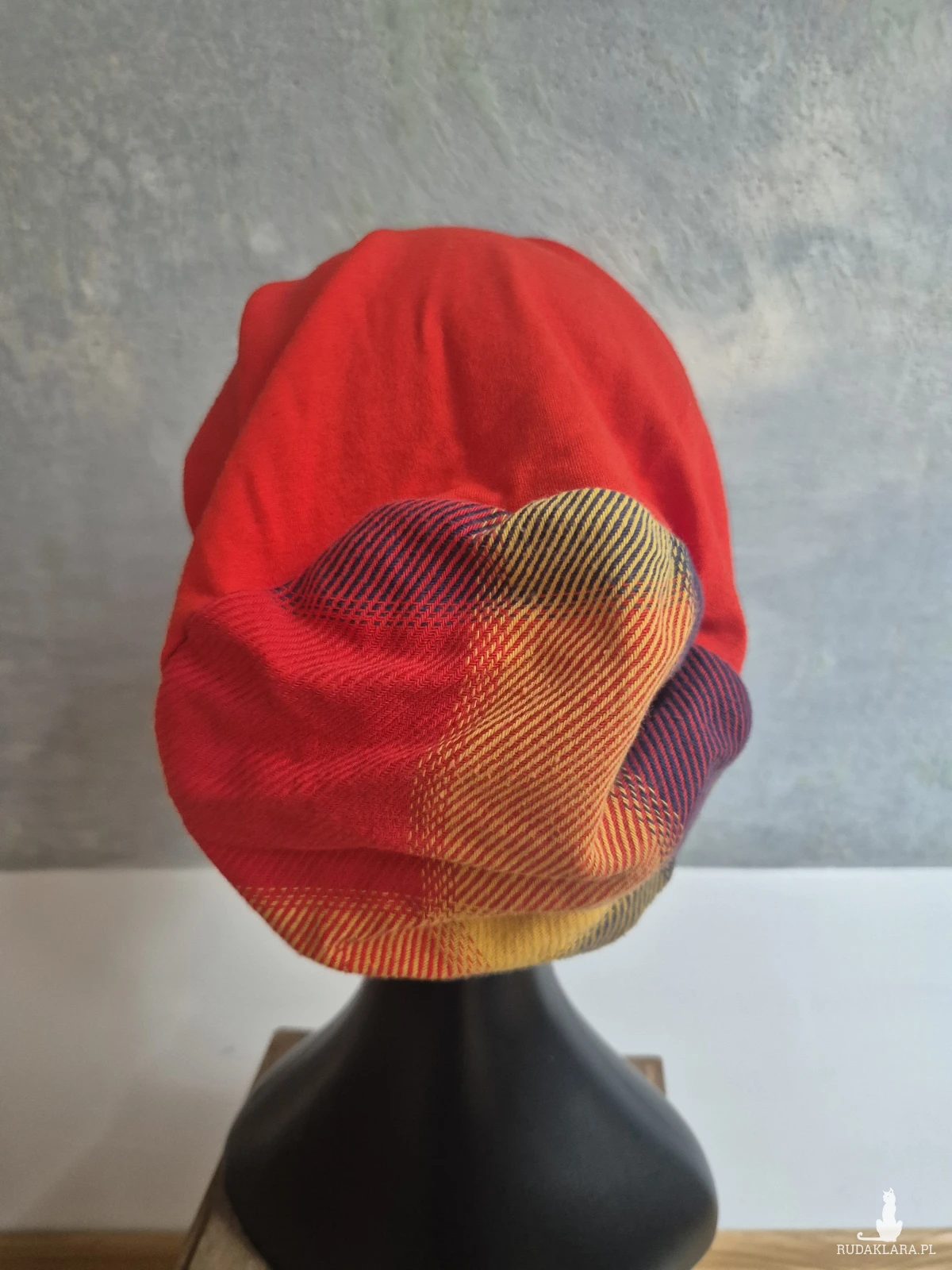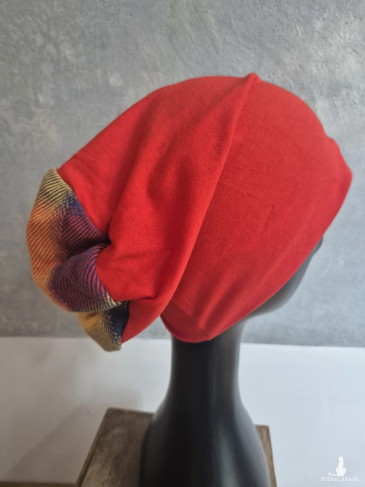 Czapka pomarańczowa góra w kratkę dzianina bez podszewki brzegi ostre świetna na codzienne noszenie polecam P1