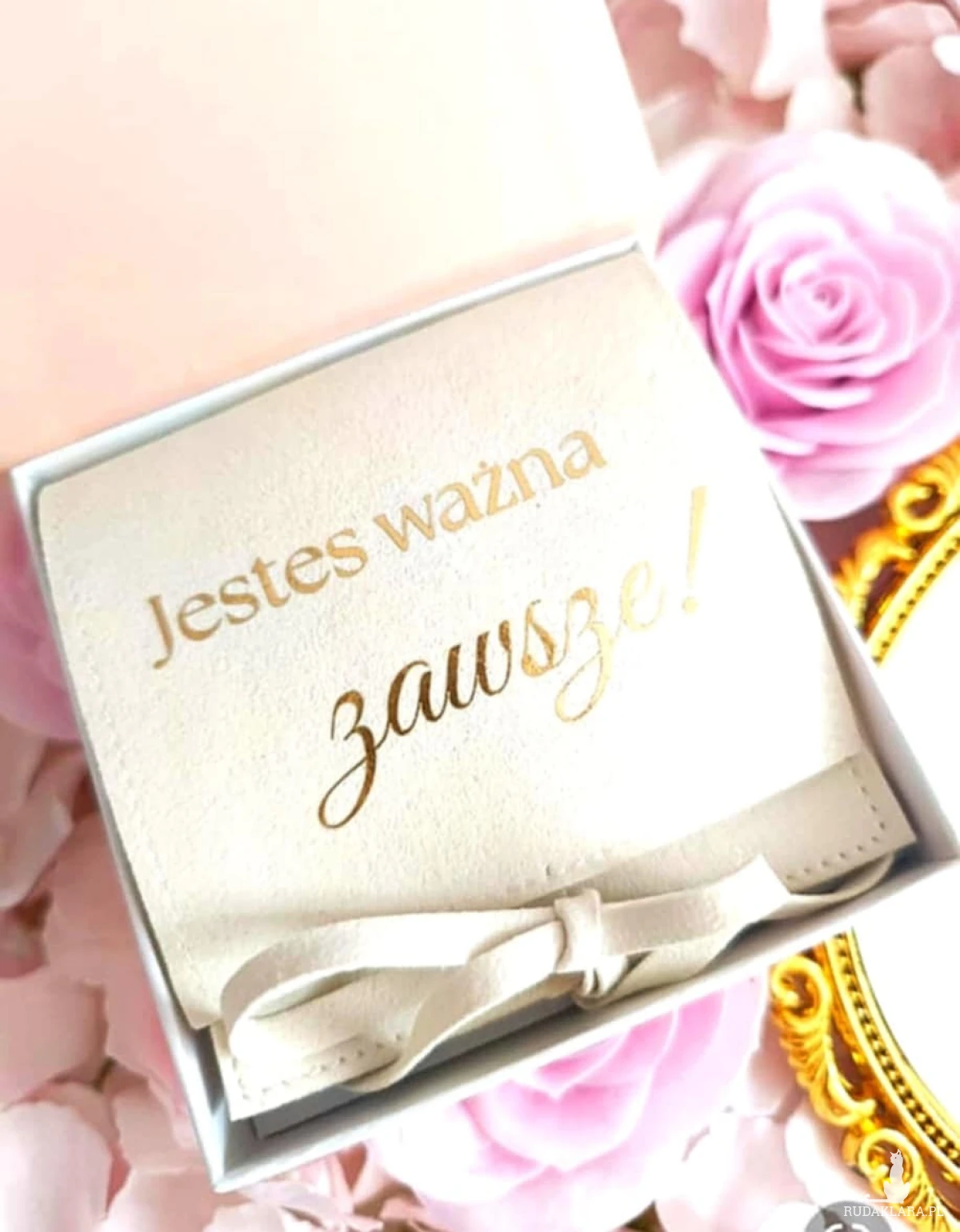 Bransoletka zapakowana jest w eleganckie logowane pudełko jubilerskie w środku znajduje się wiązana saszetka .