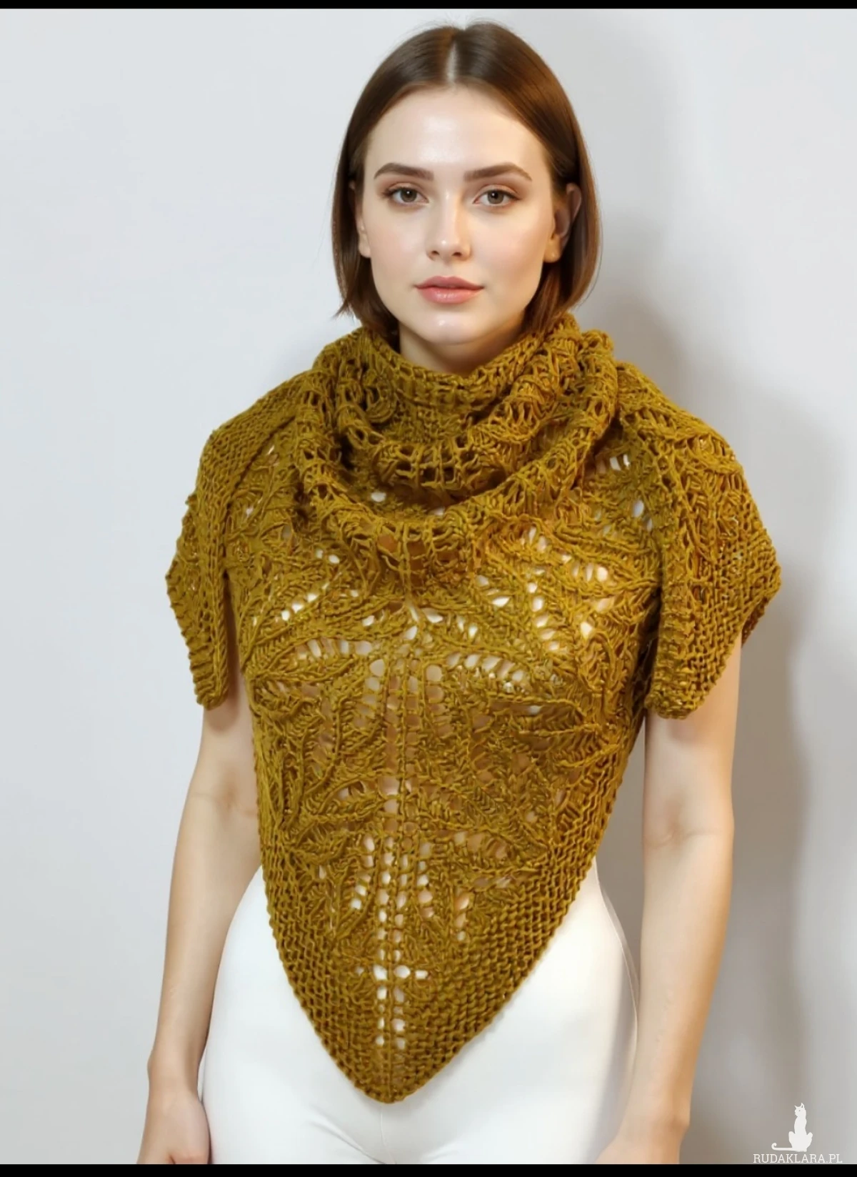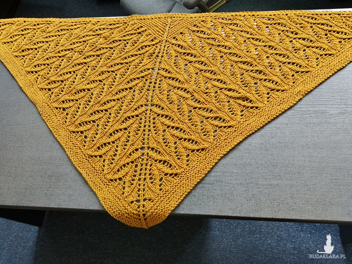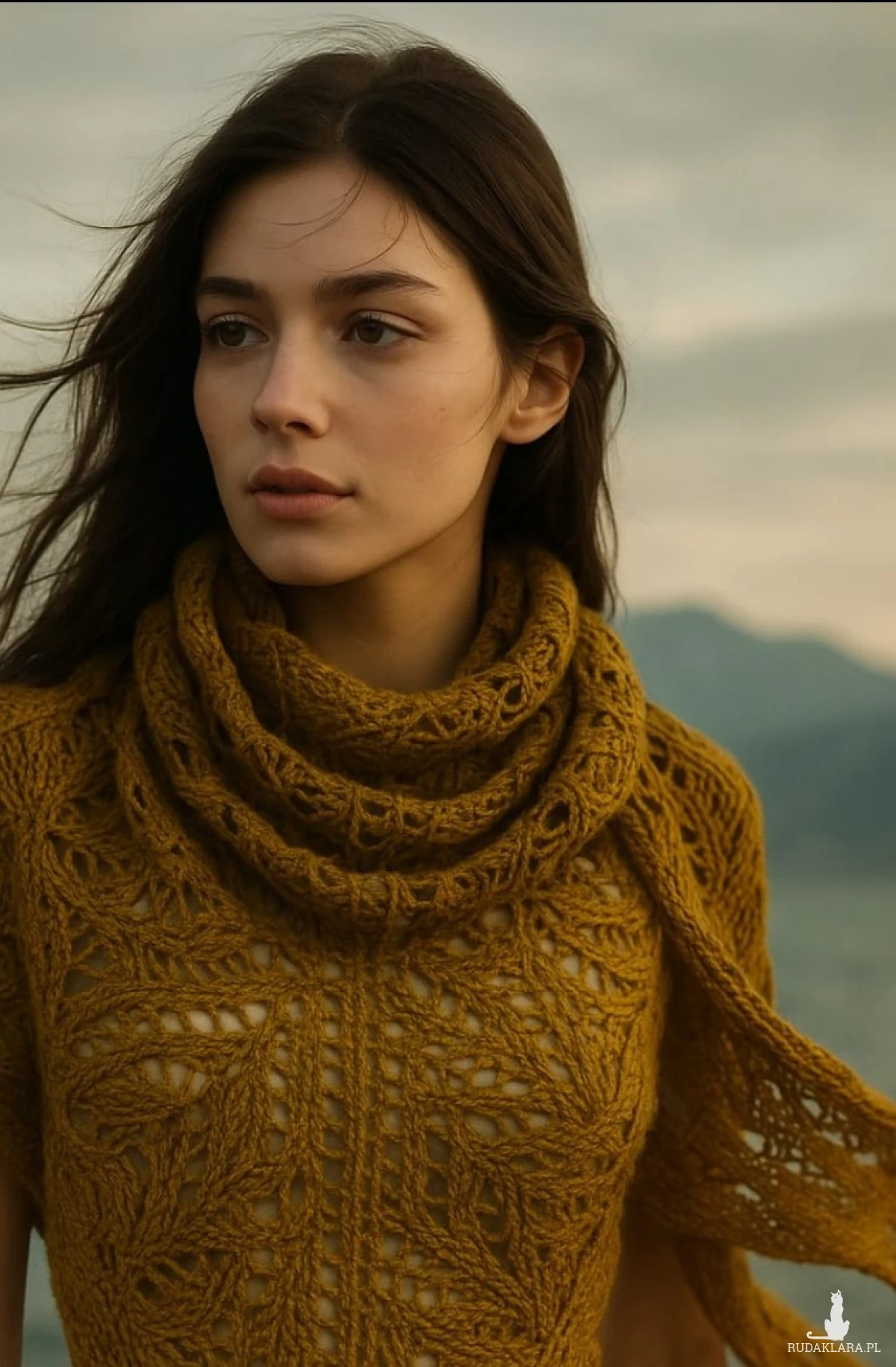 Chusta damska ręcznie zrobiona w kolorach ochry, musztardy.