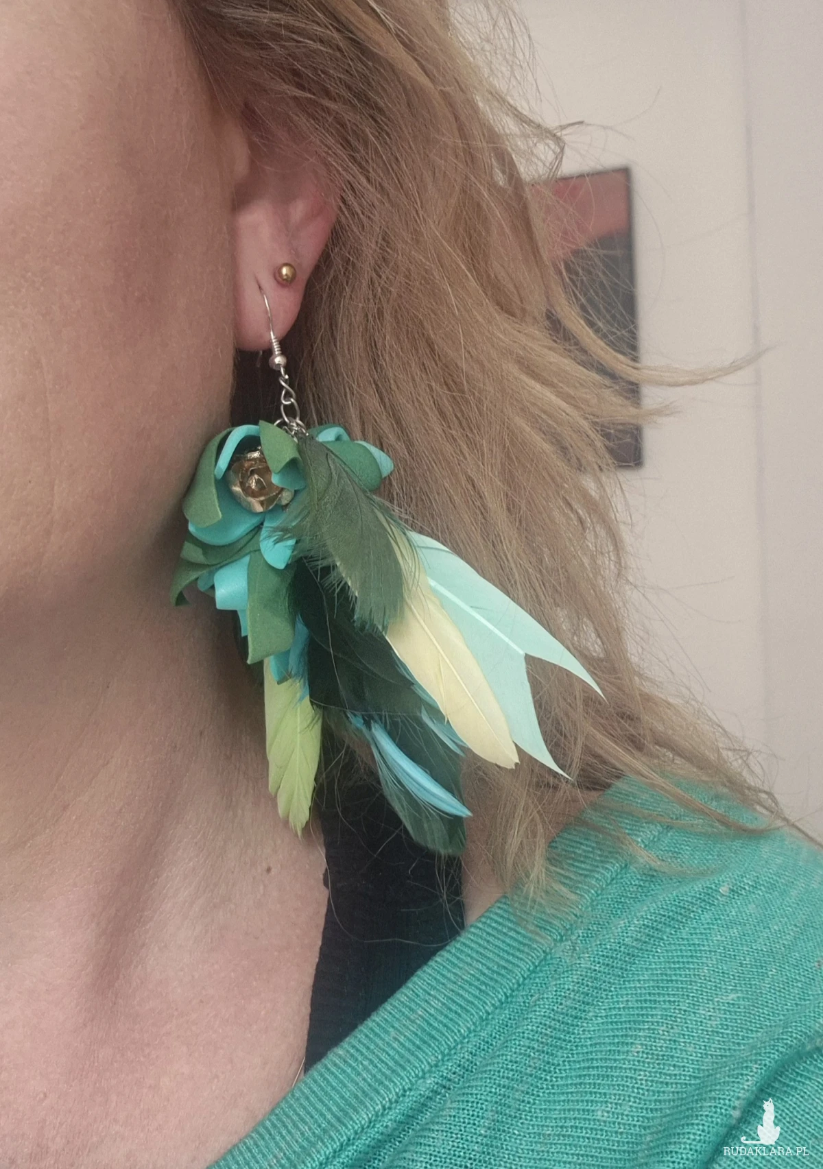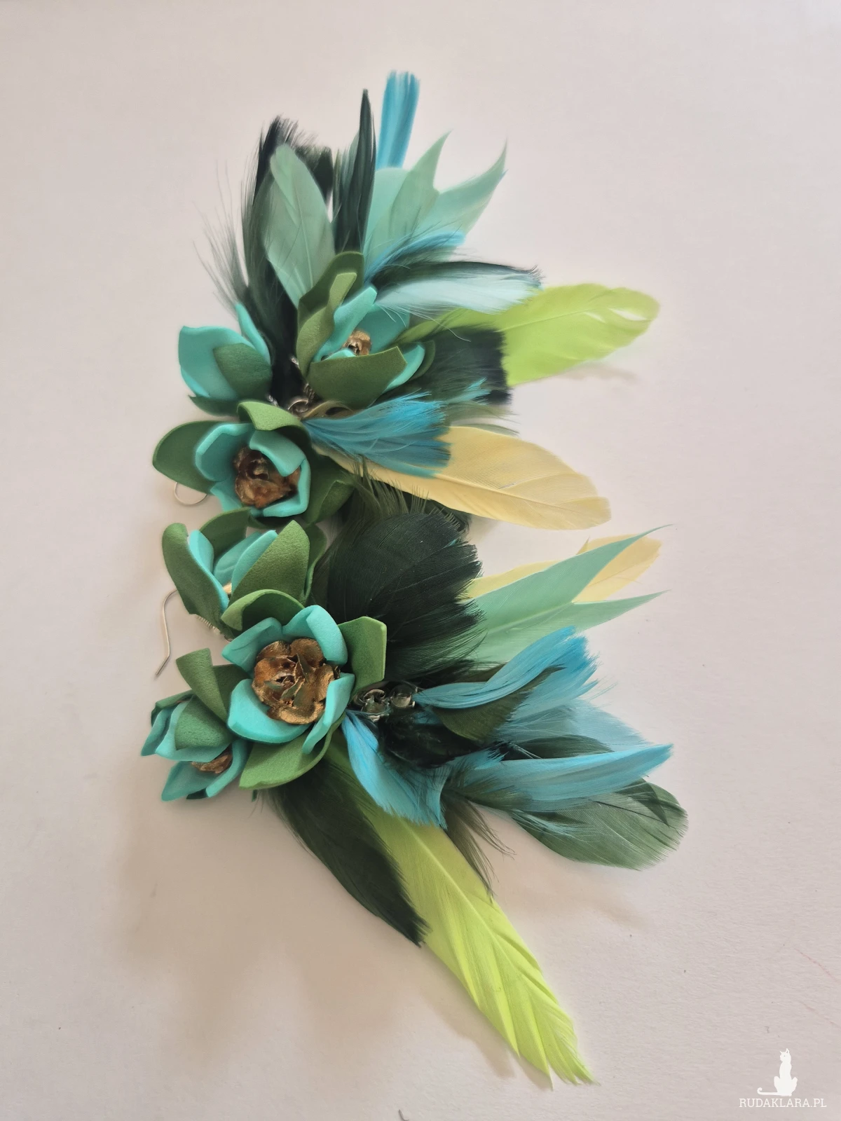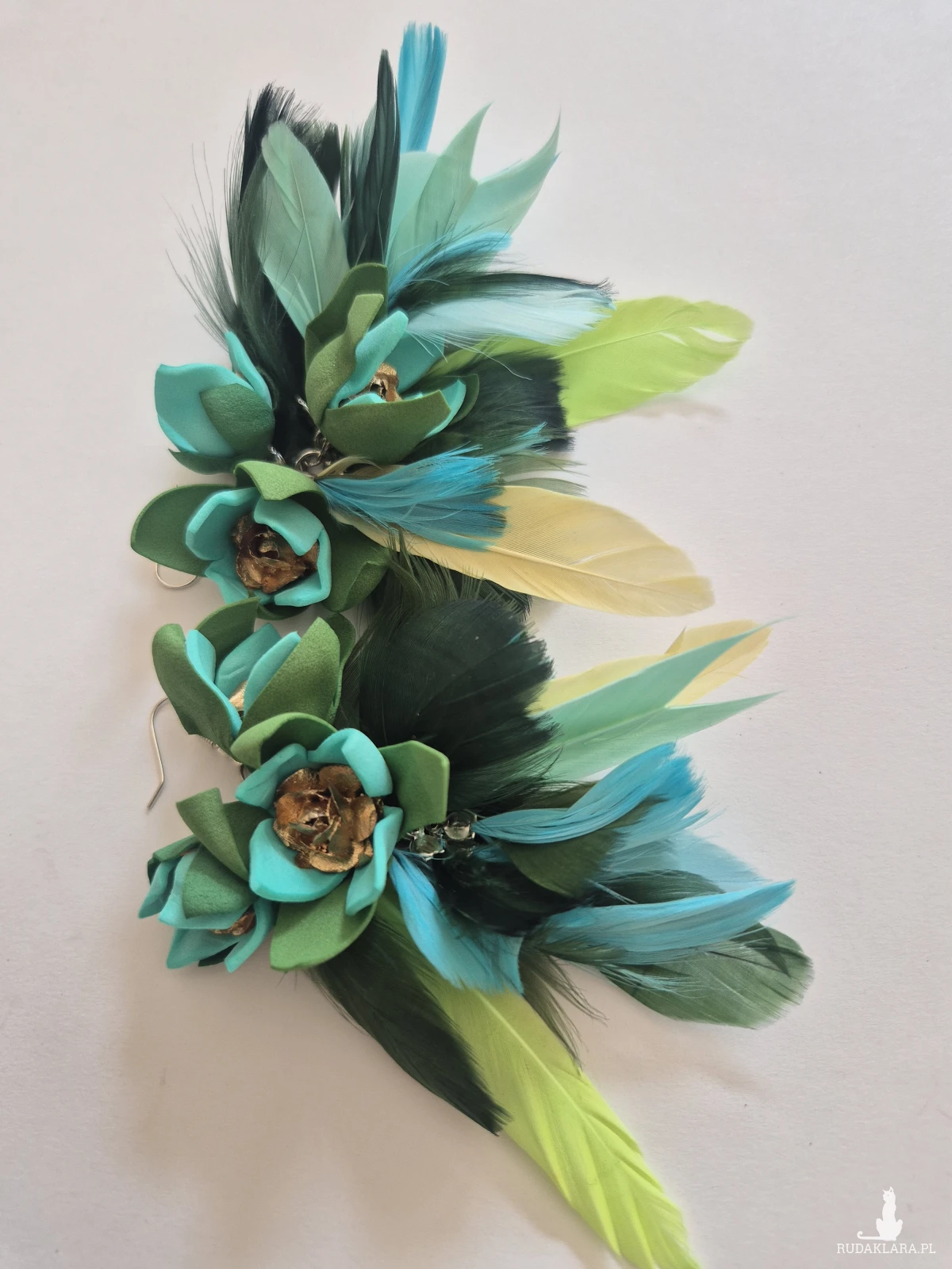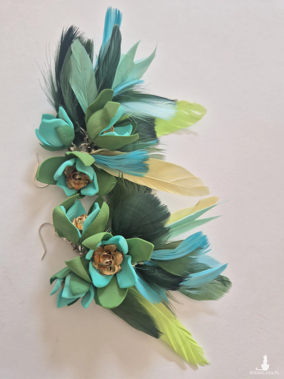 Kolczyki granatowe kwiaty duże leciutkie cudne Box X1