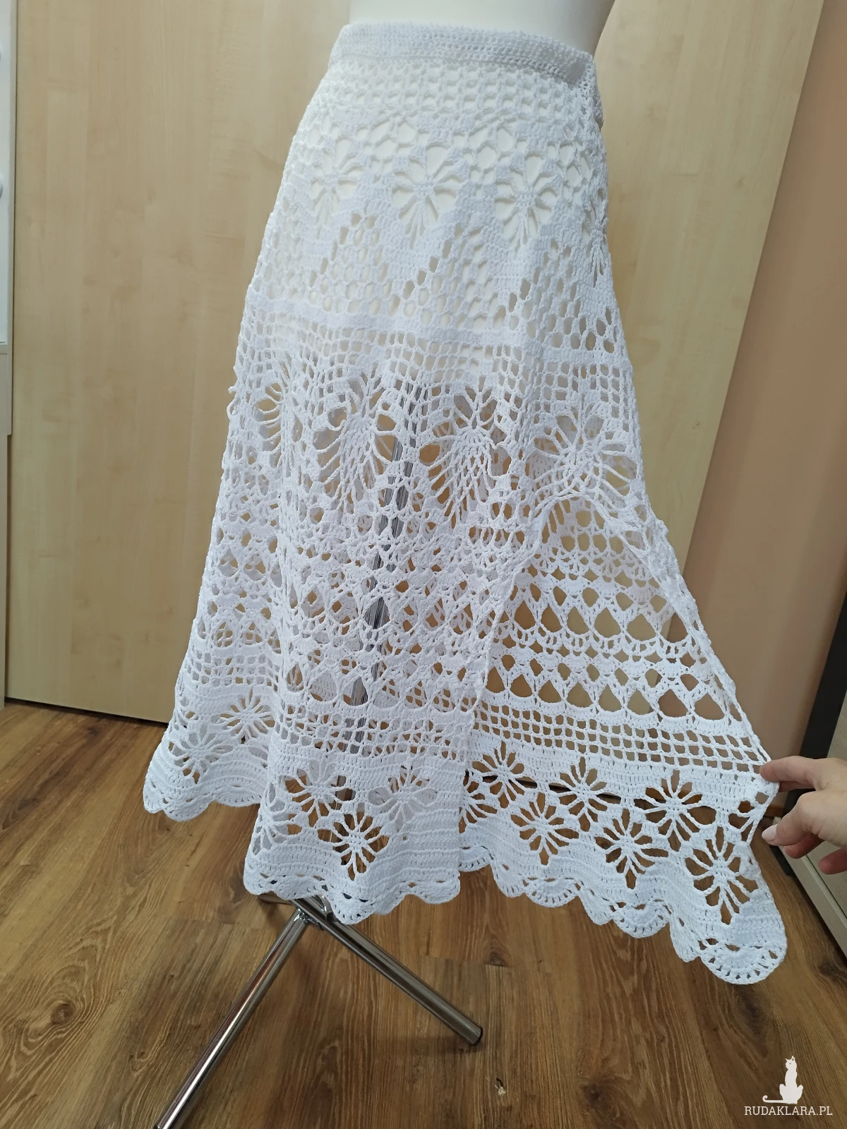 Biała spódnica zrobiona na szydełku, lekka na lato. Jest możliwość zamówienia innego koloru i rozmiaru. Cena do uzgodnienia