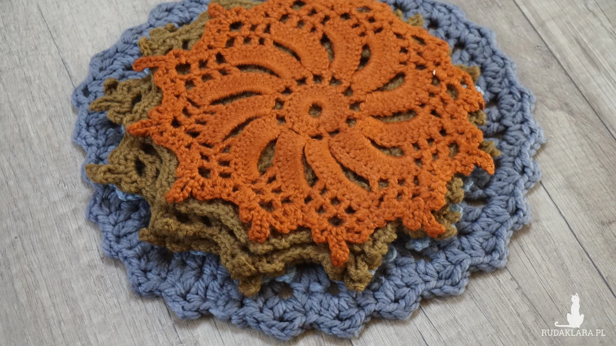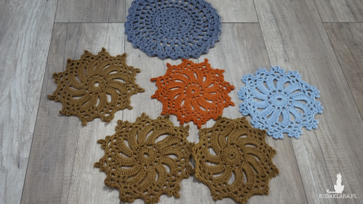 6 szt różnych wspaniałych podkładek wykonanych na szydełku ( ręczna praca)