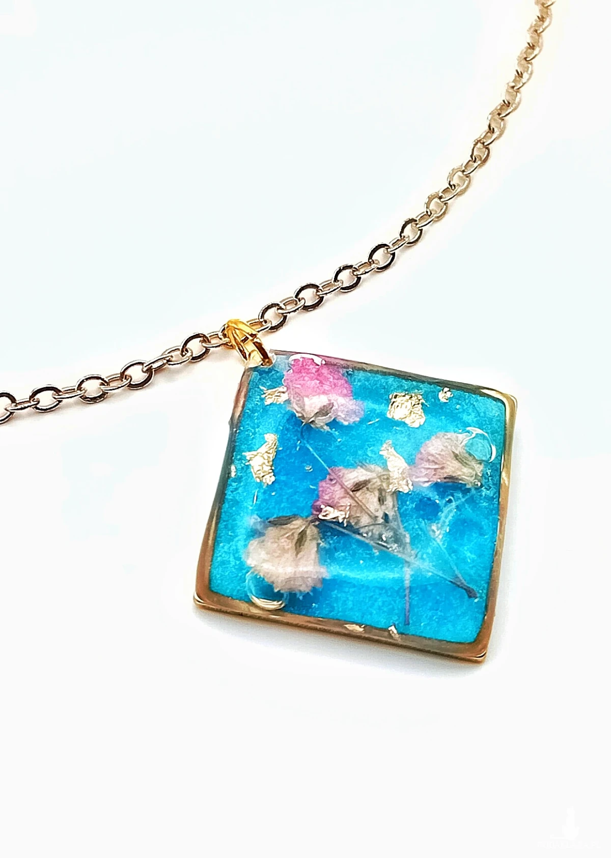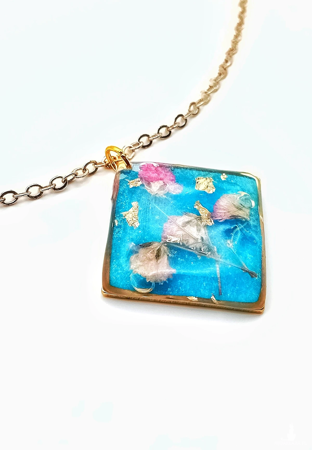 zawieszka handmade, biżuteria z żywicy, zawieszka z kwiatami, prezent dla niej, personalizowana biżuteria, stal chirurgiczna biżuteria, naturalna biżuteria, boho zawieszka, rękodzieło biżuteria