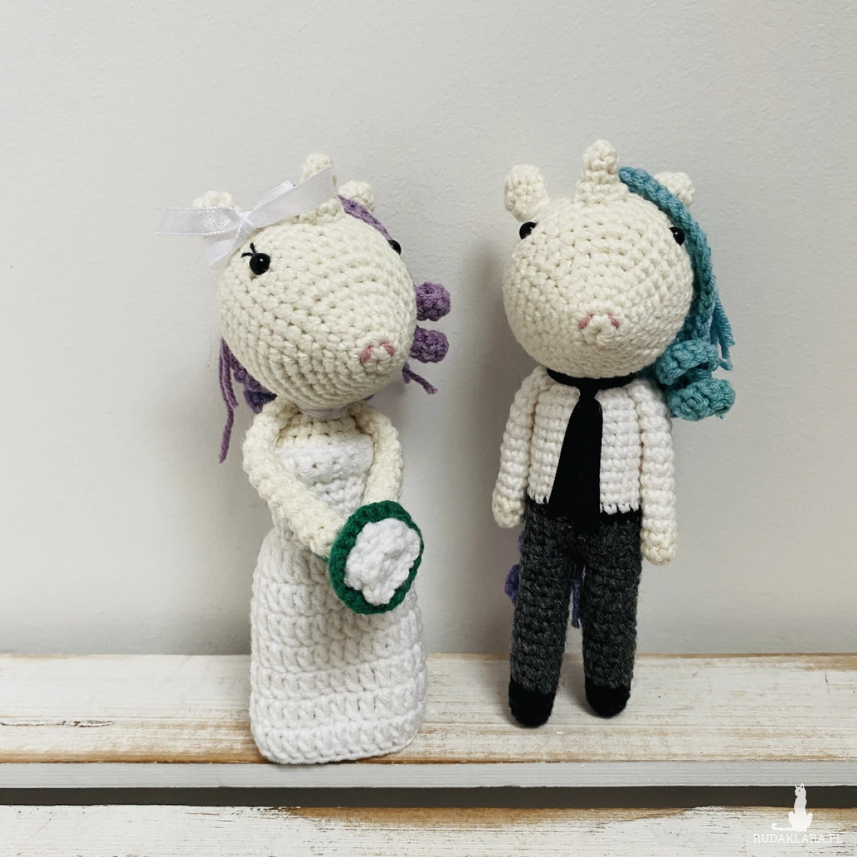 Młoda Para – jednorożce maskotki ręcznie robione na szydełku – idealny prezent ślubny