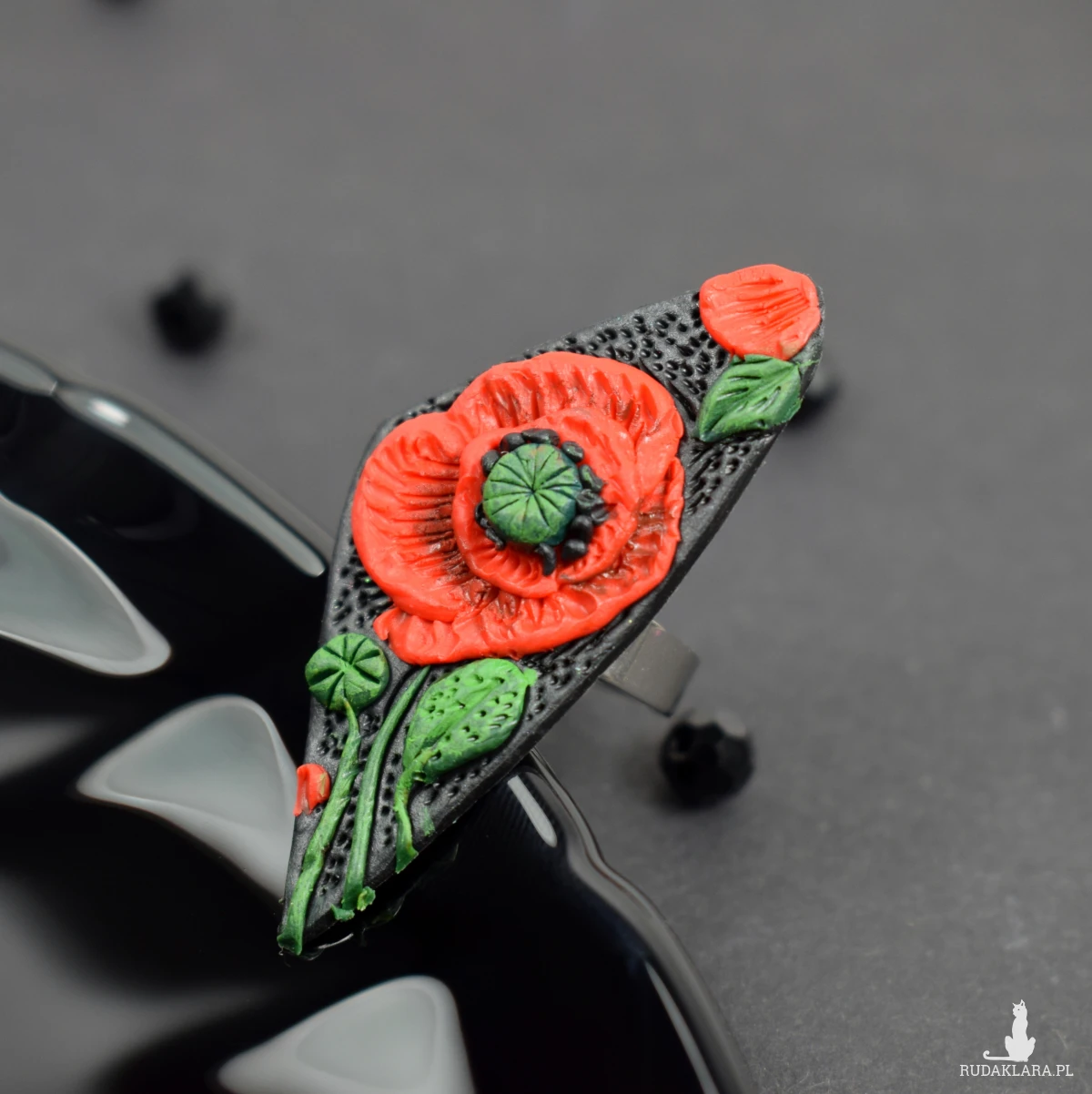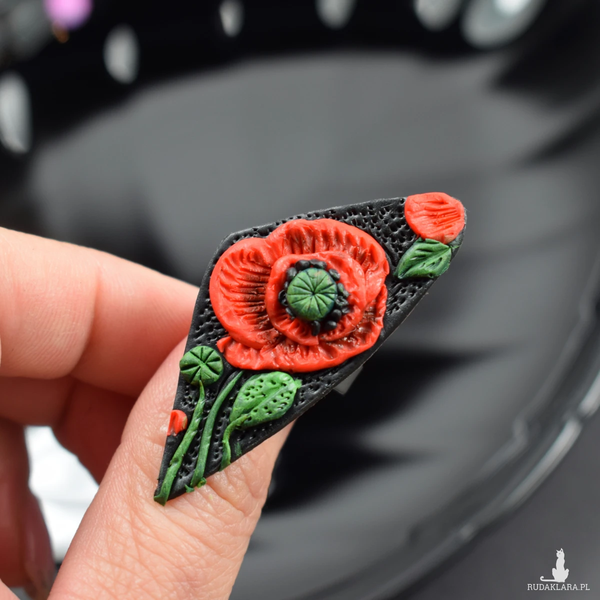Ozdobny element z makiem wykonany został ręcznie z profesjonalnej glinki polimerowej.