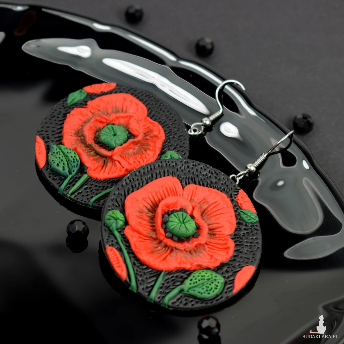 połączenie czerwieni i czerni z dodatkiem ziele sprawiają, że kolczyki