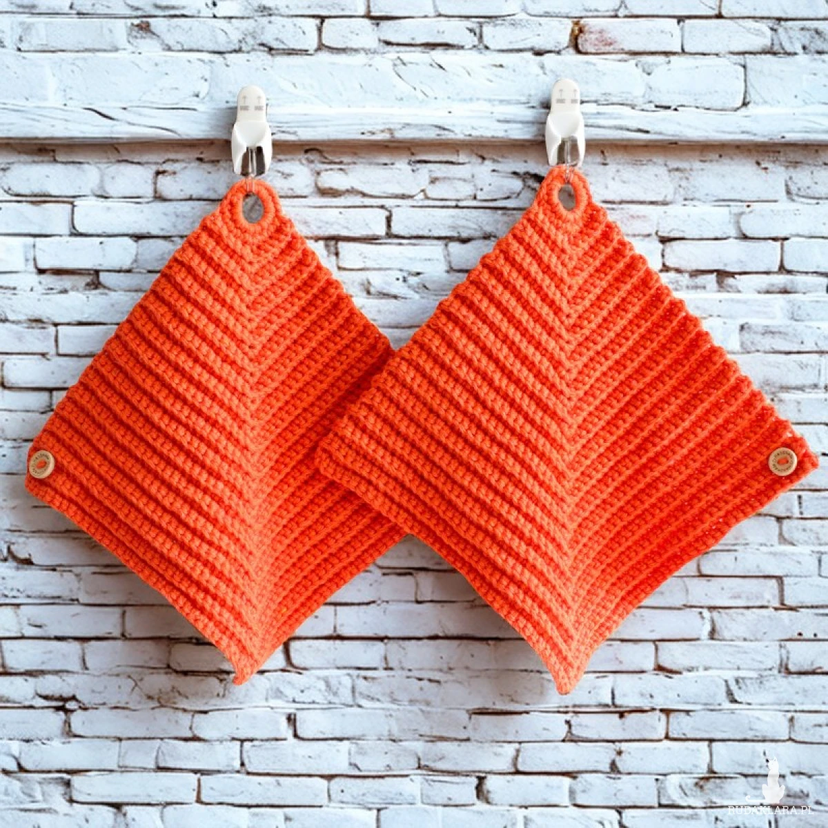Ten komplet łapek kuchennych wykonany jest strukturalnym ściegiem, który przypomina tarę do prania.