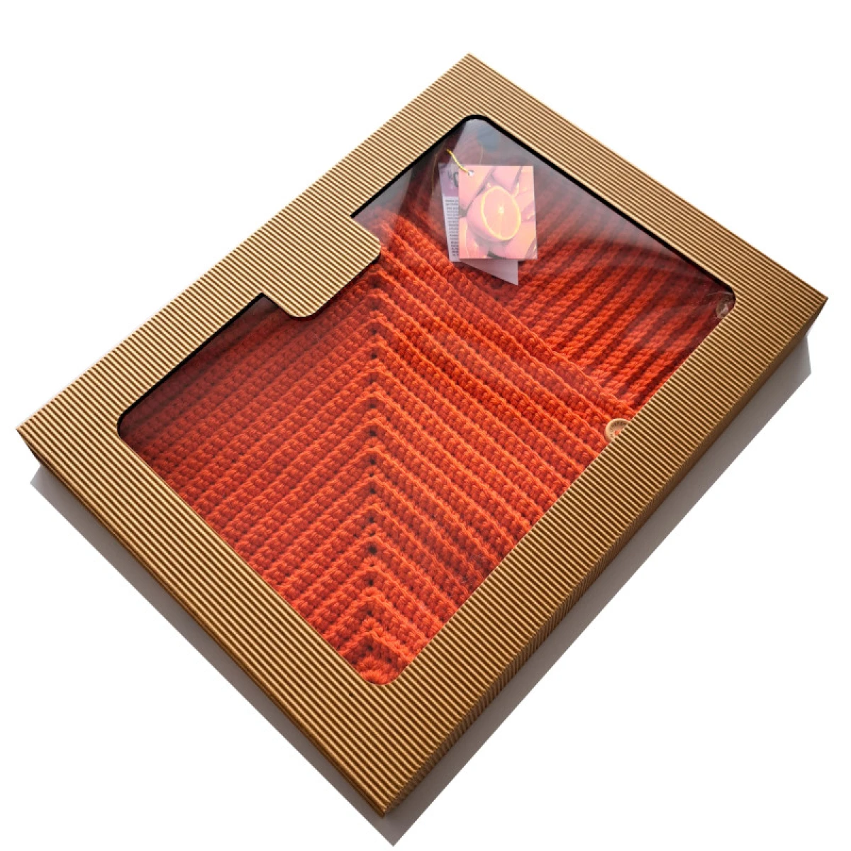 OSTRZEŻENIE: Produkt jest tekstylny, więc istnieje ryzyko zapalenia się go przy kontakcie z otwartym płomieniem. Przed złapaniem gorącego garnka czy pokrywki za pomocą łapki, wyłącz gaz i każde źródło otwartego ognia. Nie stawiaj na nich palących się świeczek.