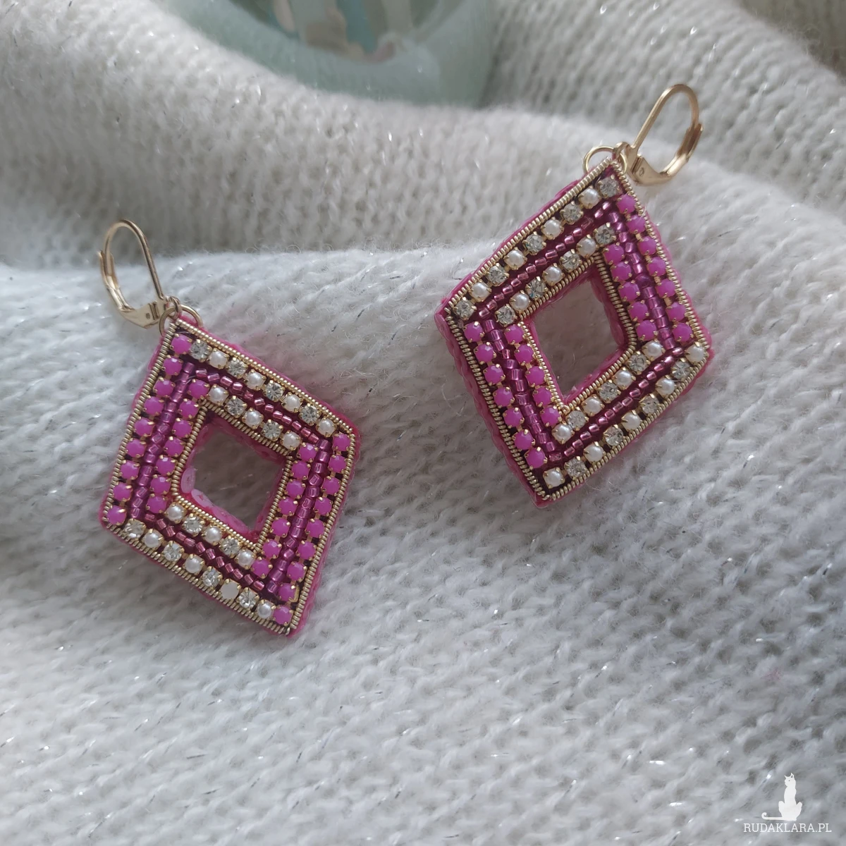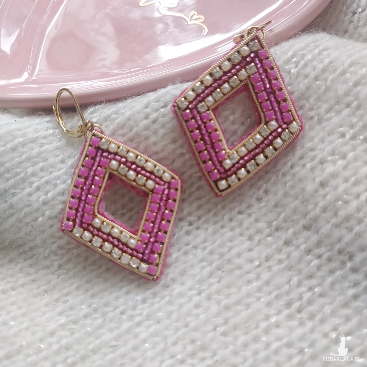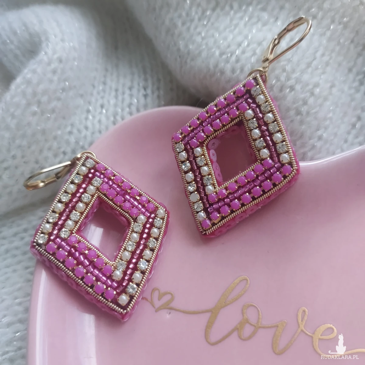 Kolczyki w kształcie rombu w odcieniach różu pięknie błyszczące w promieniach słońca przyciągną niejedno spojrzenie!
