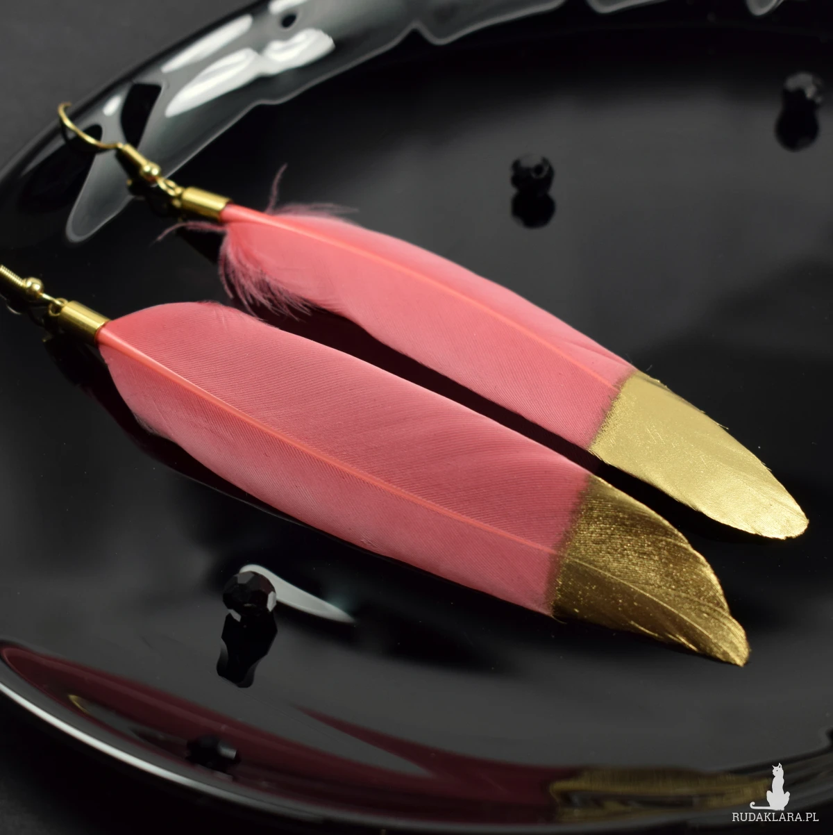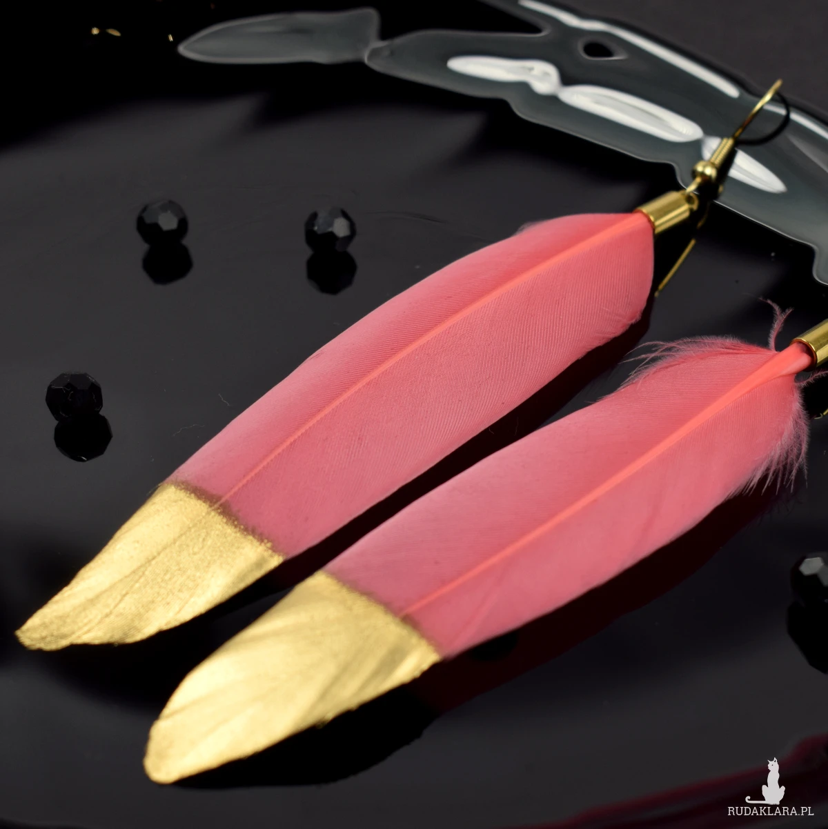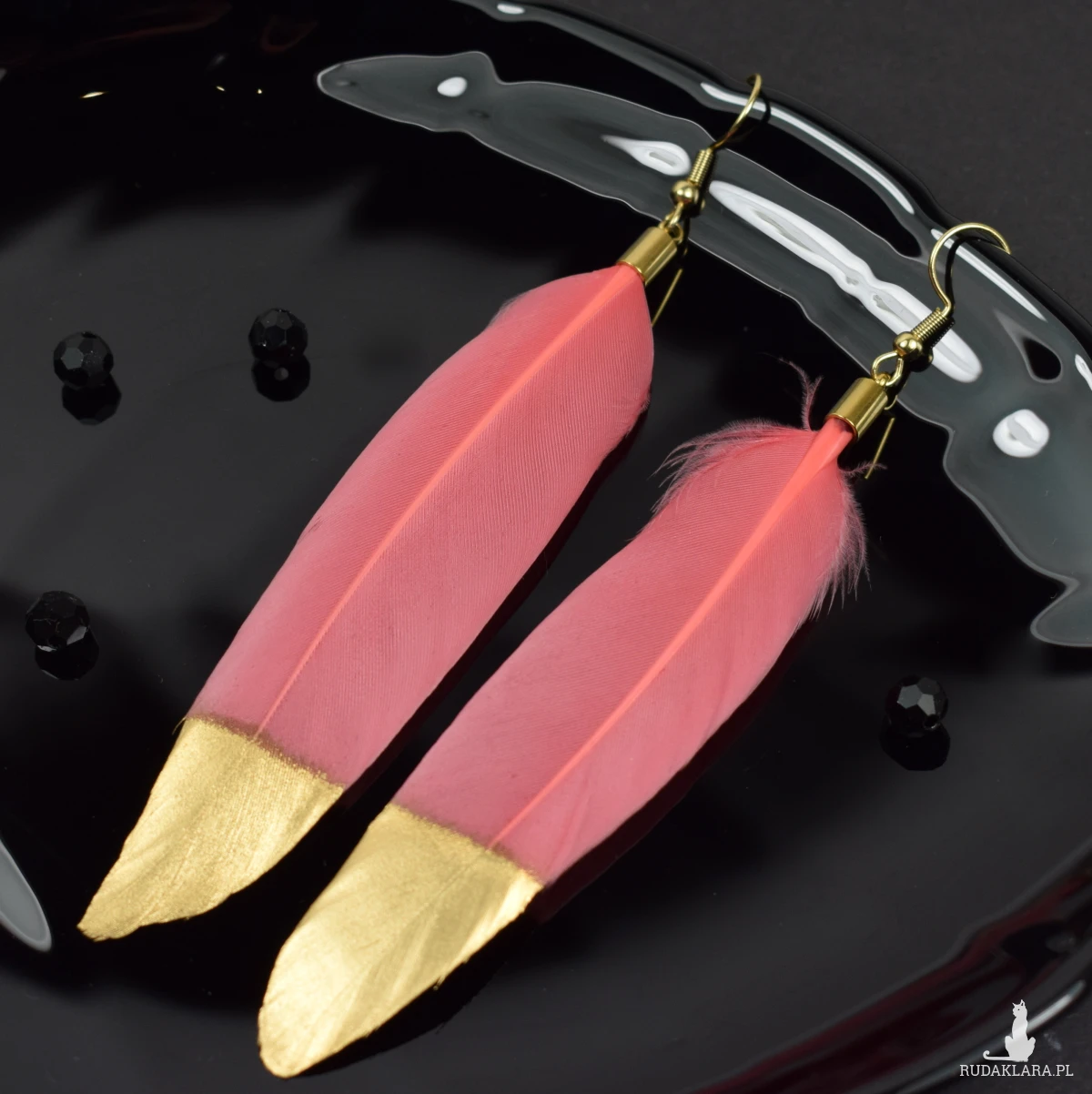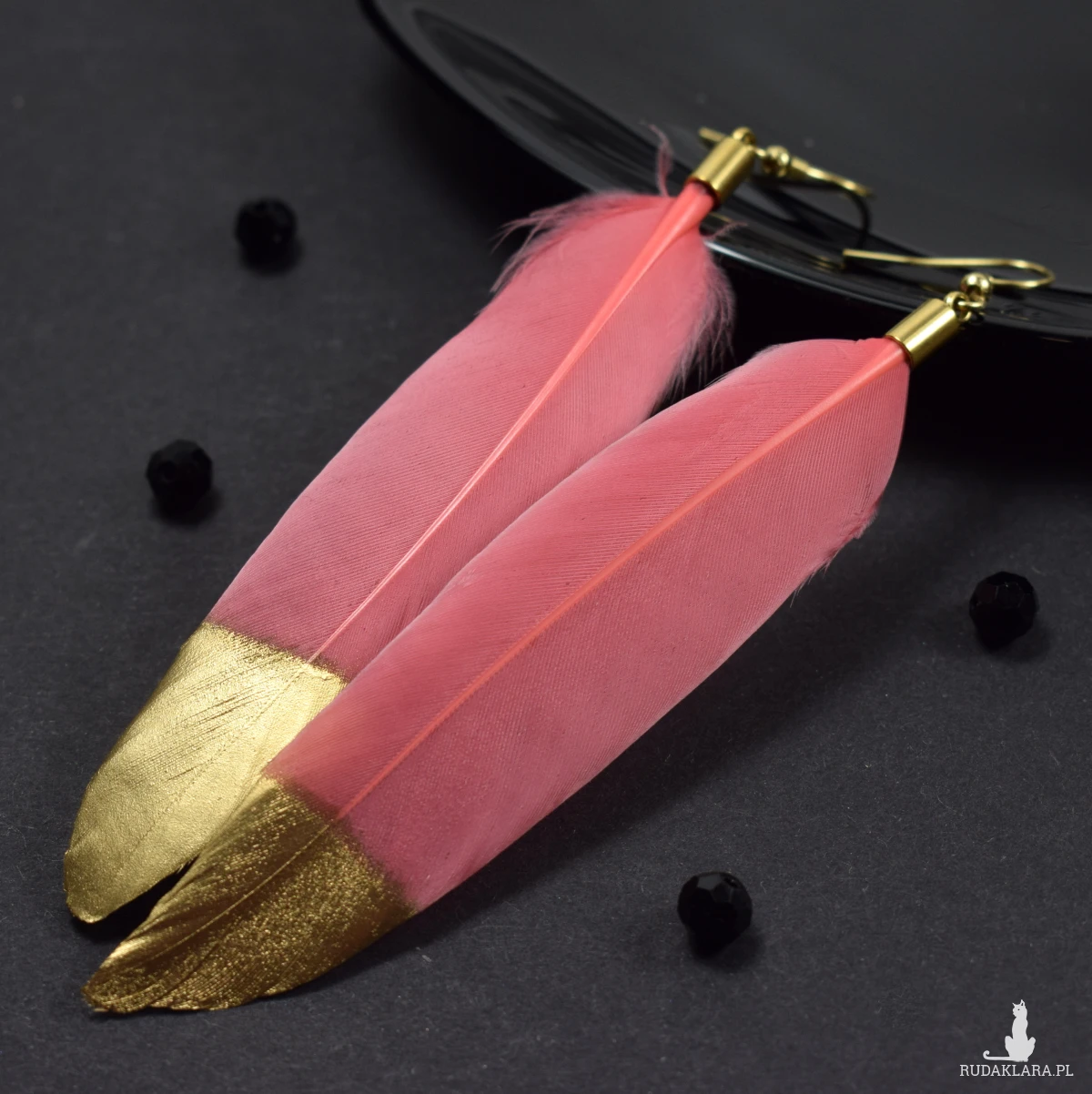 Zjawiskowe kolczyki z delikatnymi piórami w głębokim odcieniu