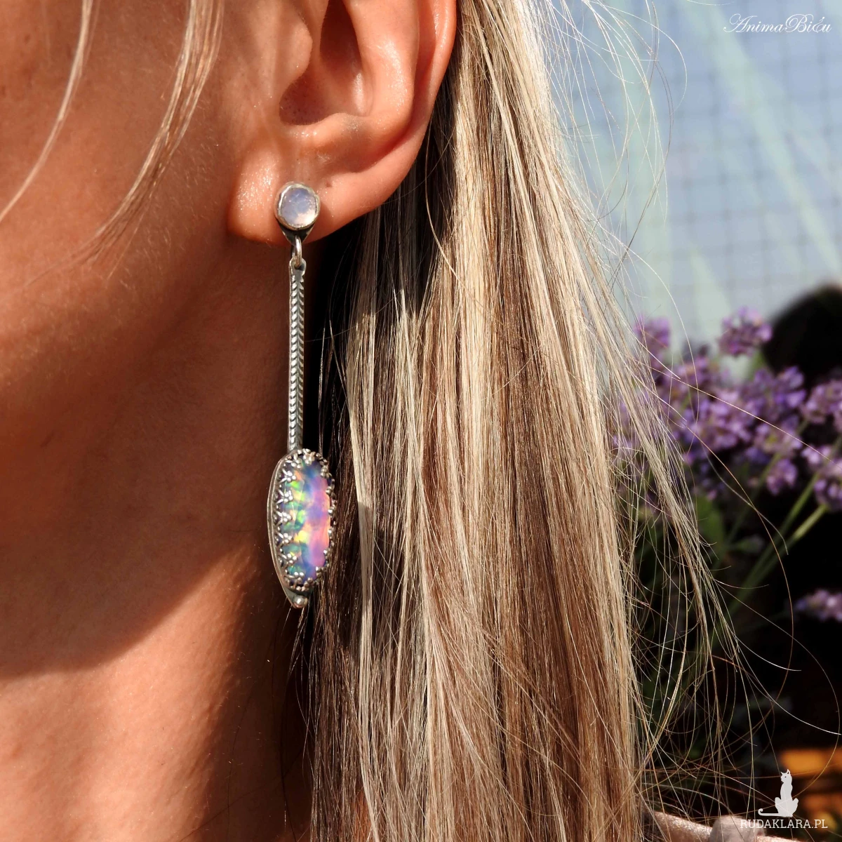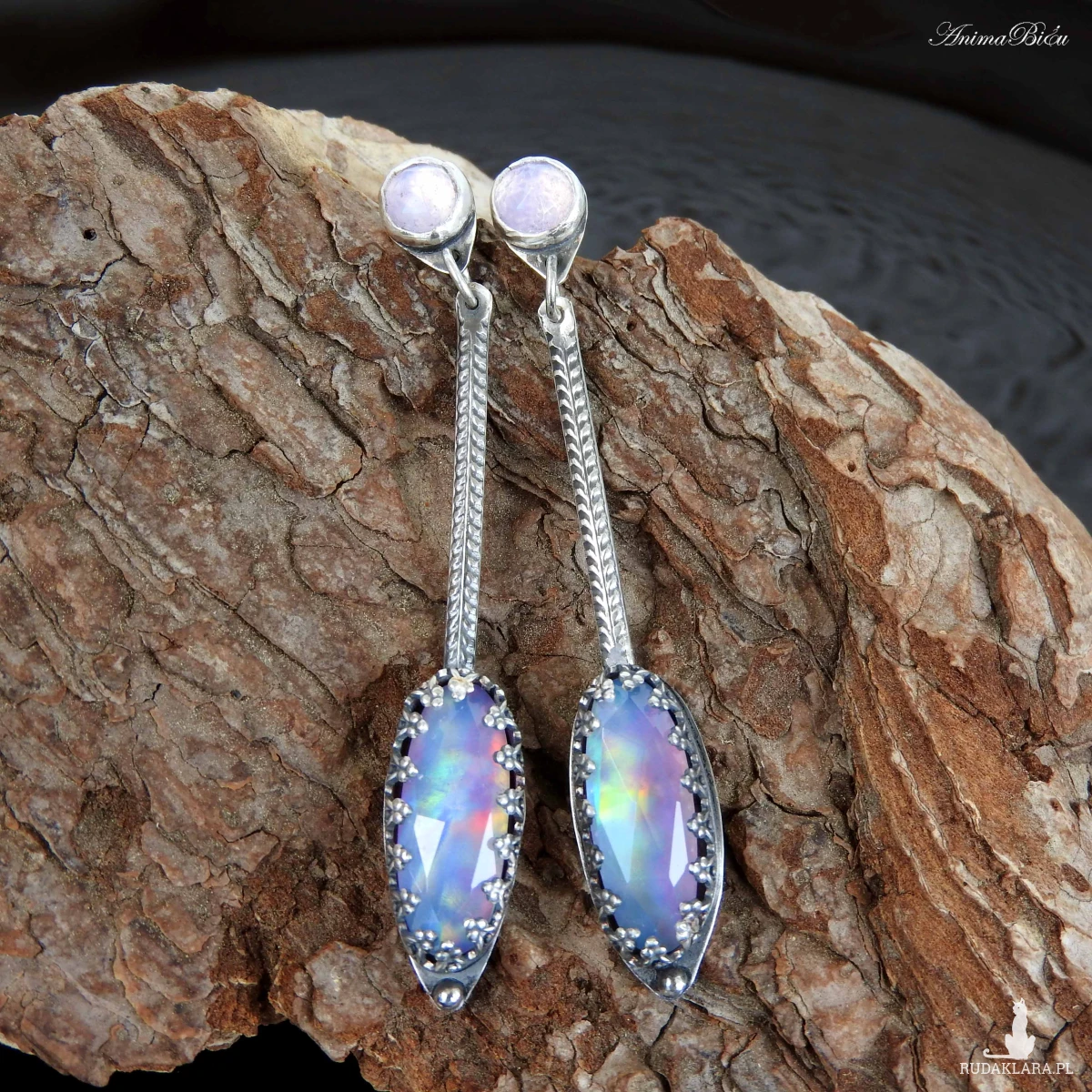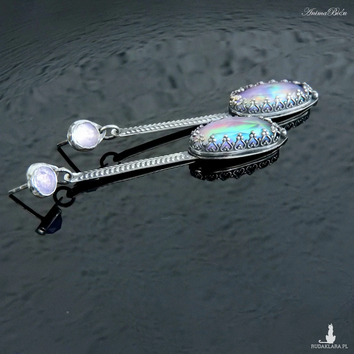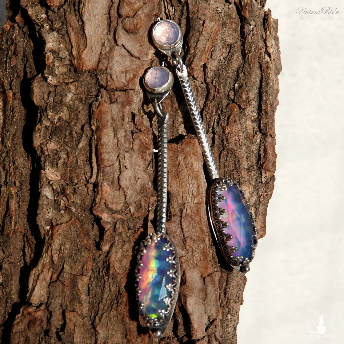 Kolczyki srebrne z opalem aurora i kwarcem lawendowym.