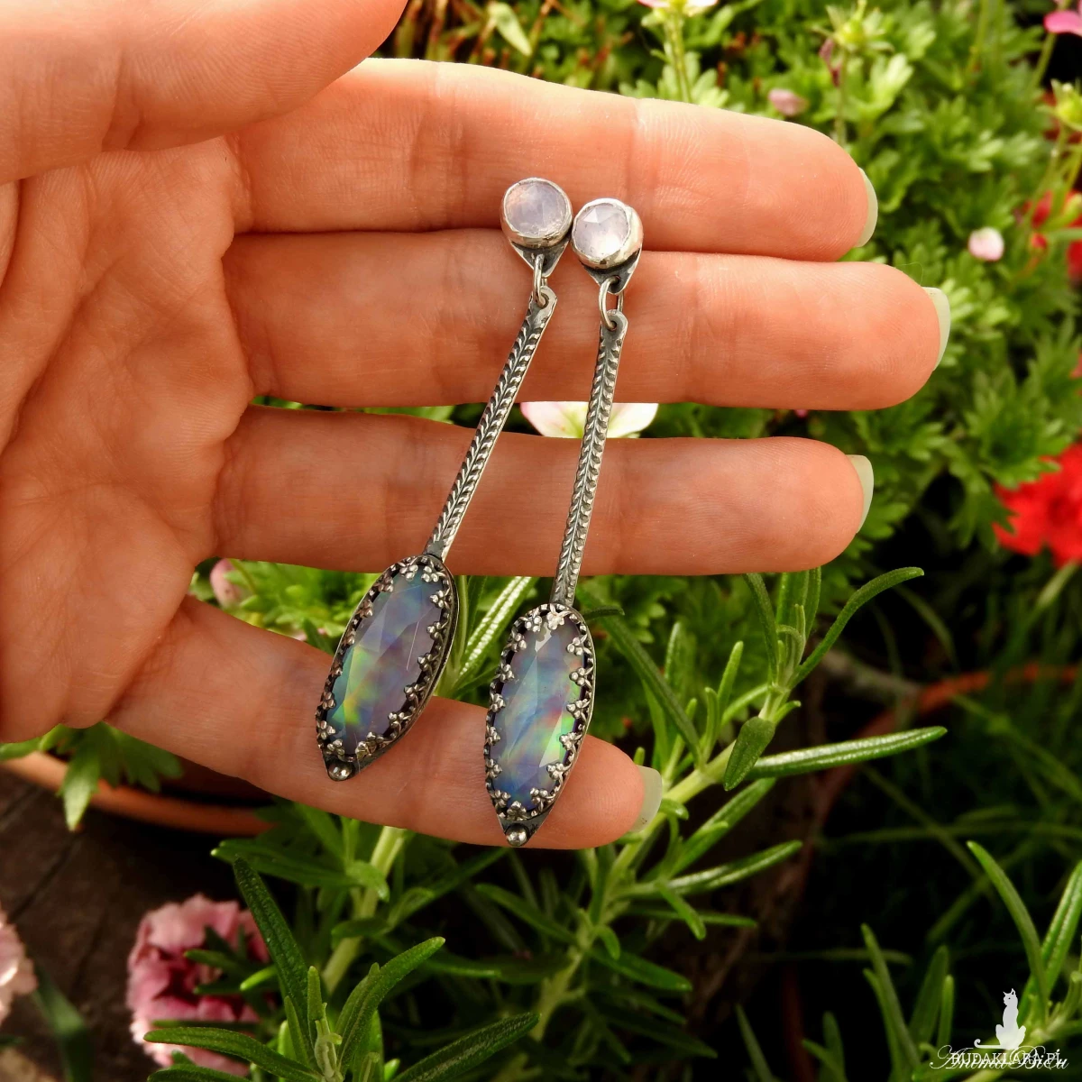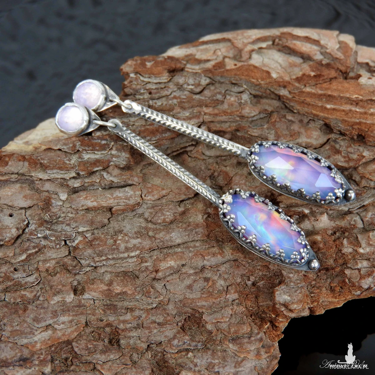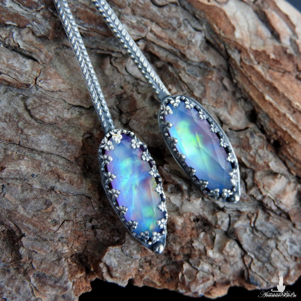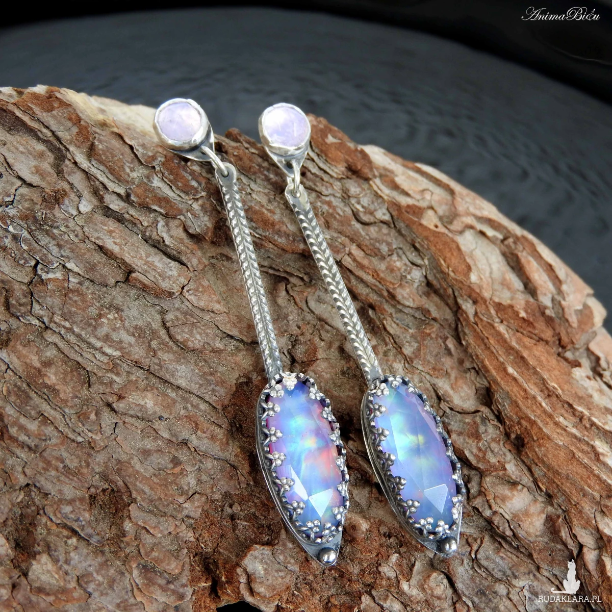 Kolczyki srebrne z opalem aurora i kwarcem lawendowym.