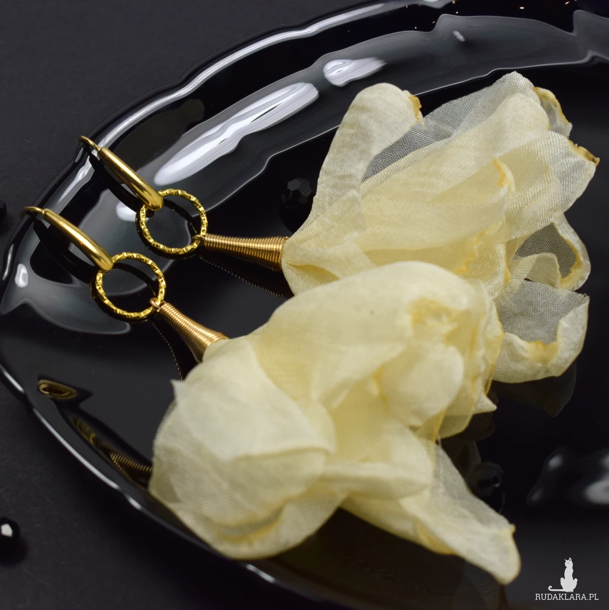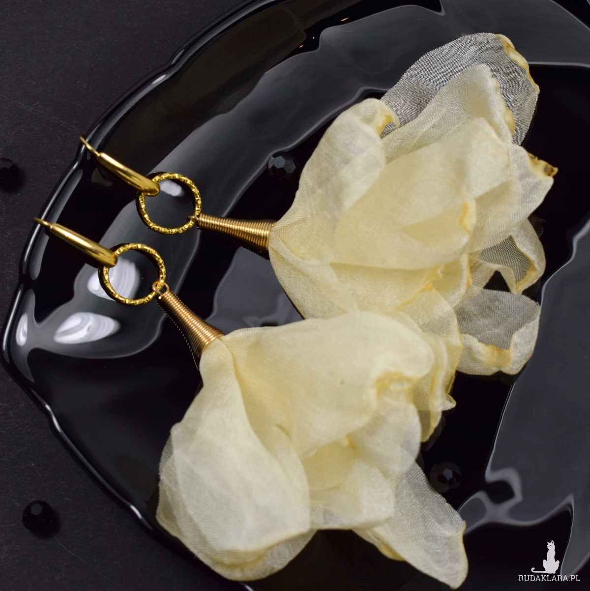 Długie, kremowe kolczyki kwiaty - lekkie jak piórko