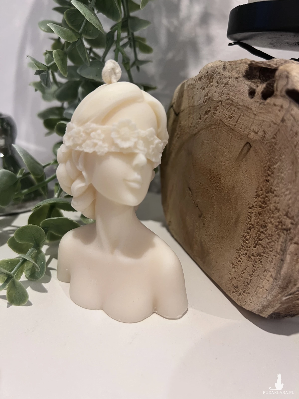 W tym ogłoszeniu świeca w kształcie kobiet z wiankiem