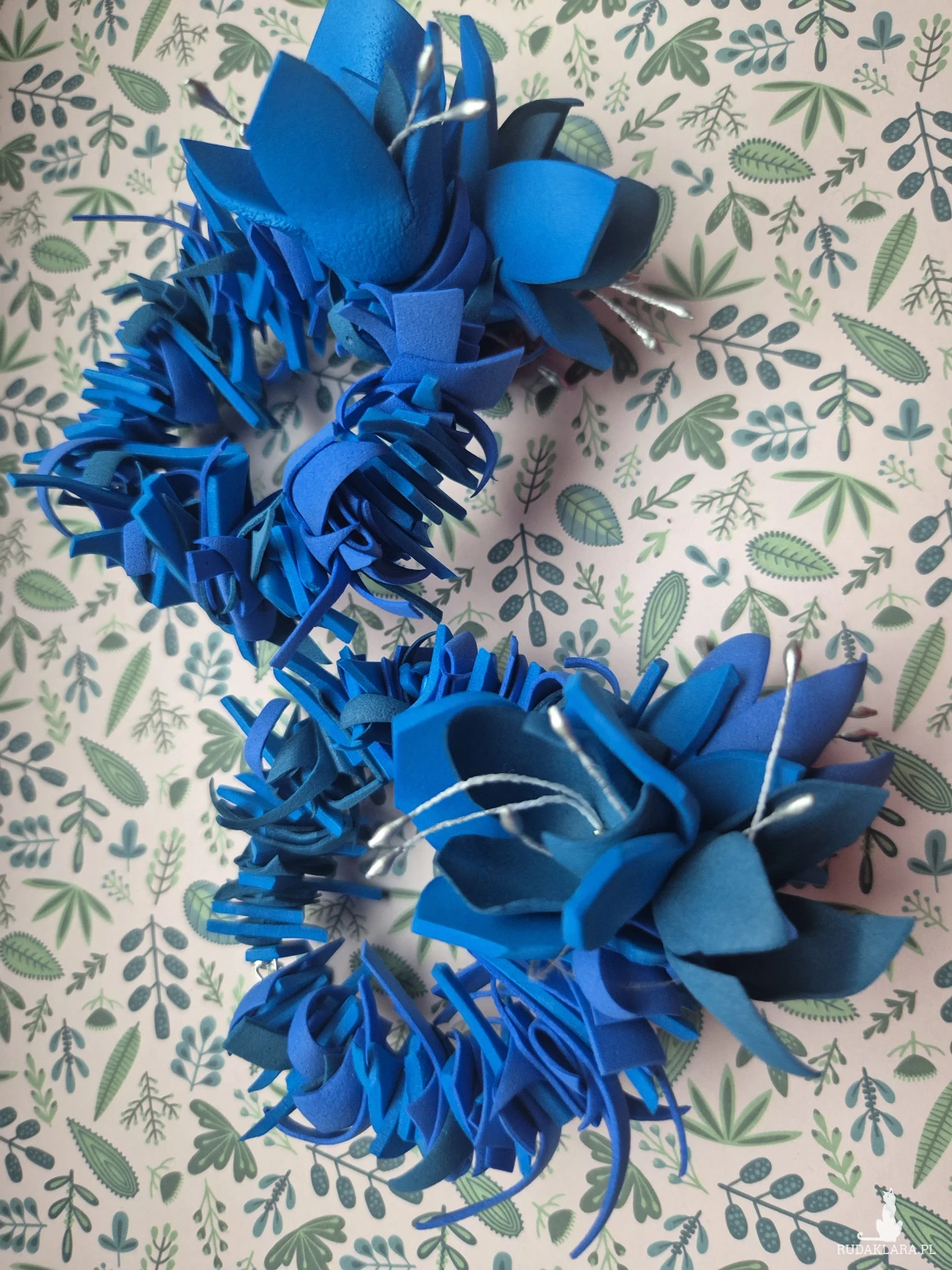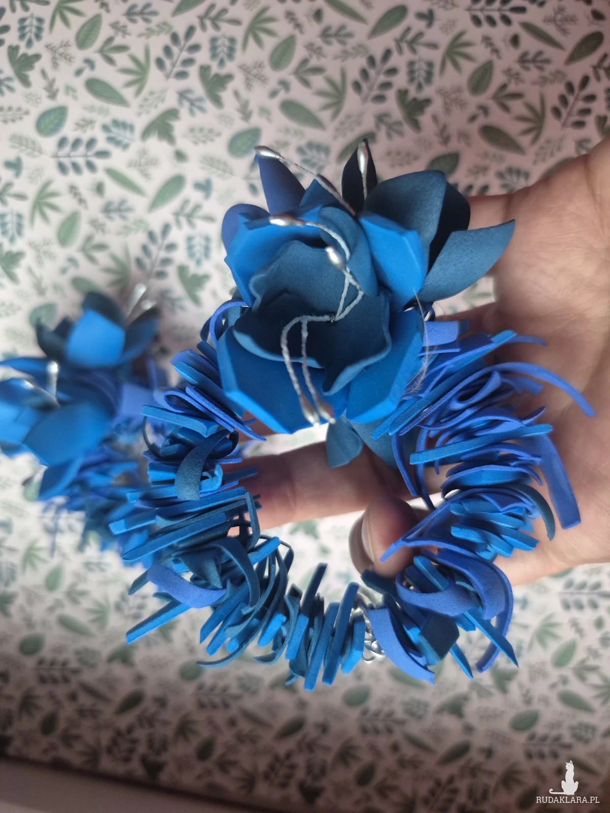 Klipsy granatowe kwiaty duże leciutkie cudne Box X1