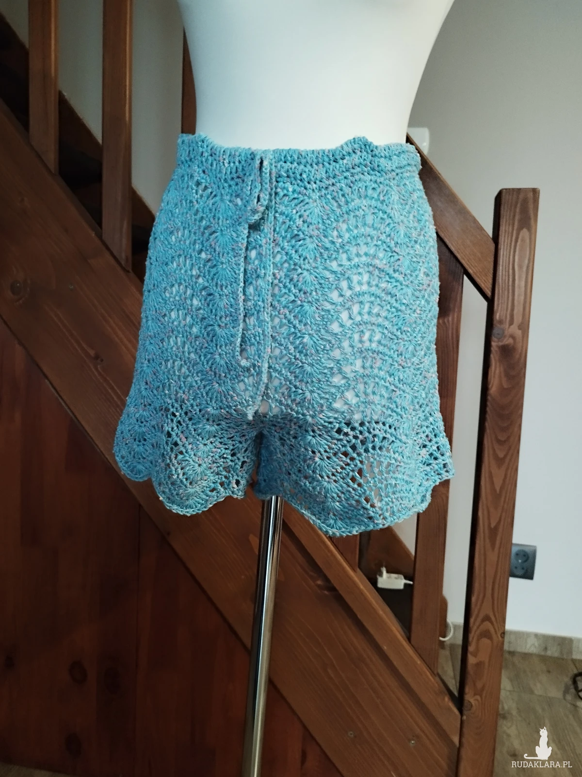 Spodenki damskie zrobione na szydełku z włóczki wiskoza. Można zamówić inny kolor i rozmiar