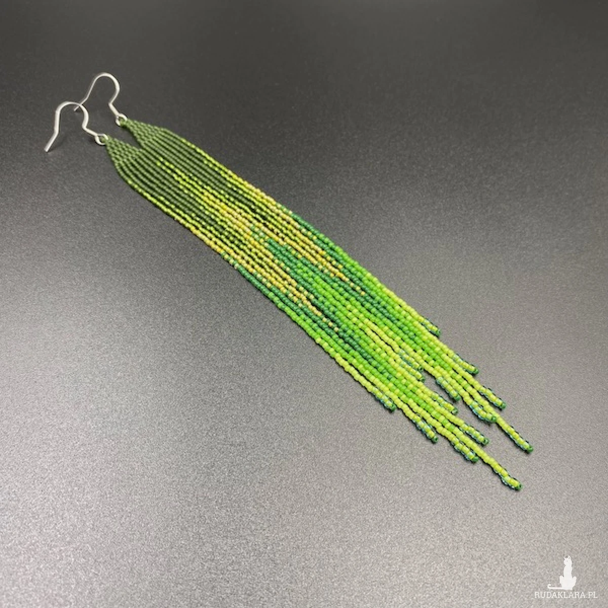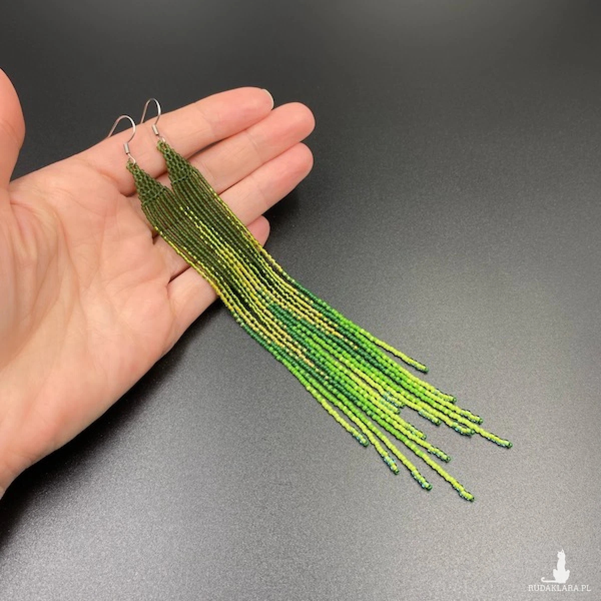 Bardzo długie i wąskie kolczyki do ramion z efektem cieniowania, zostały wykonane z najmniejszych na rynku koralików Toho 15. W 100% utkane ręcznie i z największą starannością.