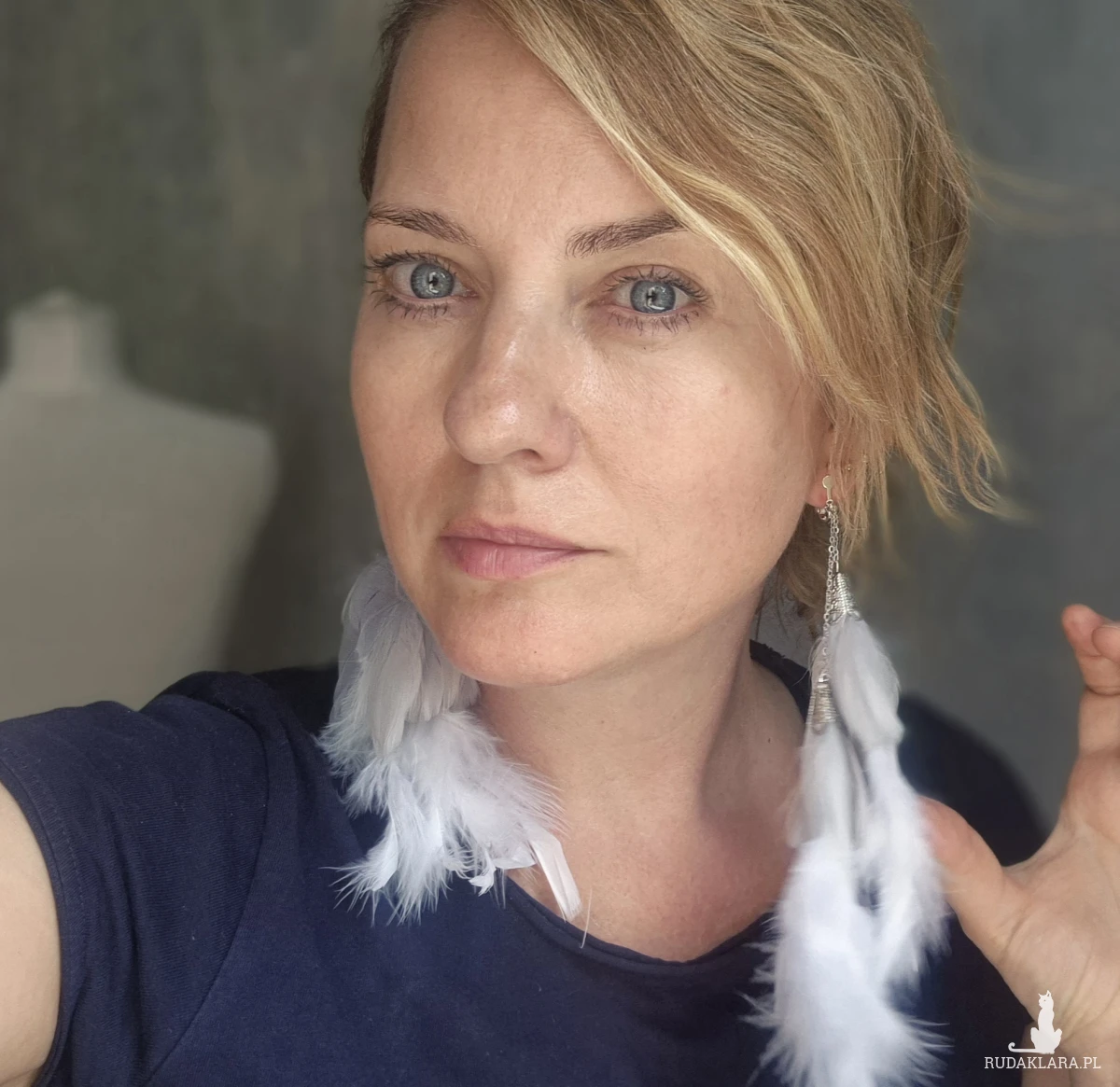 Klipsy długie biało szare pióra mogą być ślubne bardzo stylowe polecam zwracają uwagę duże leciutkie cudne Box X1