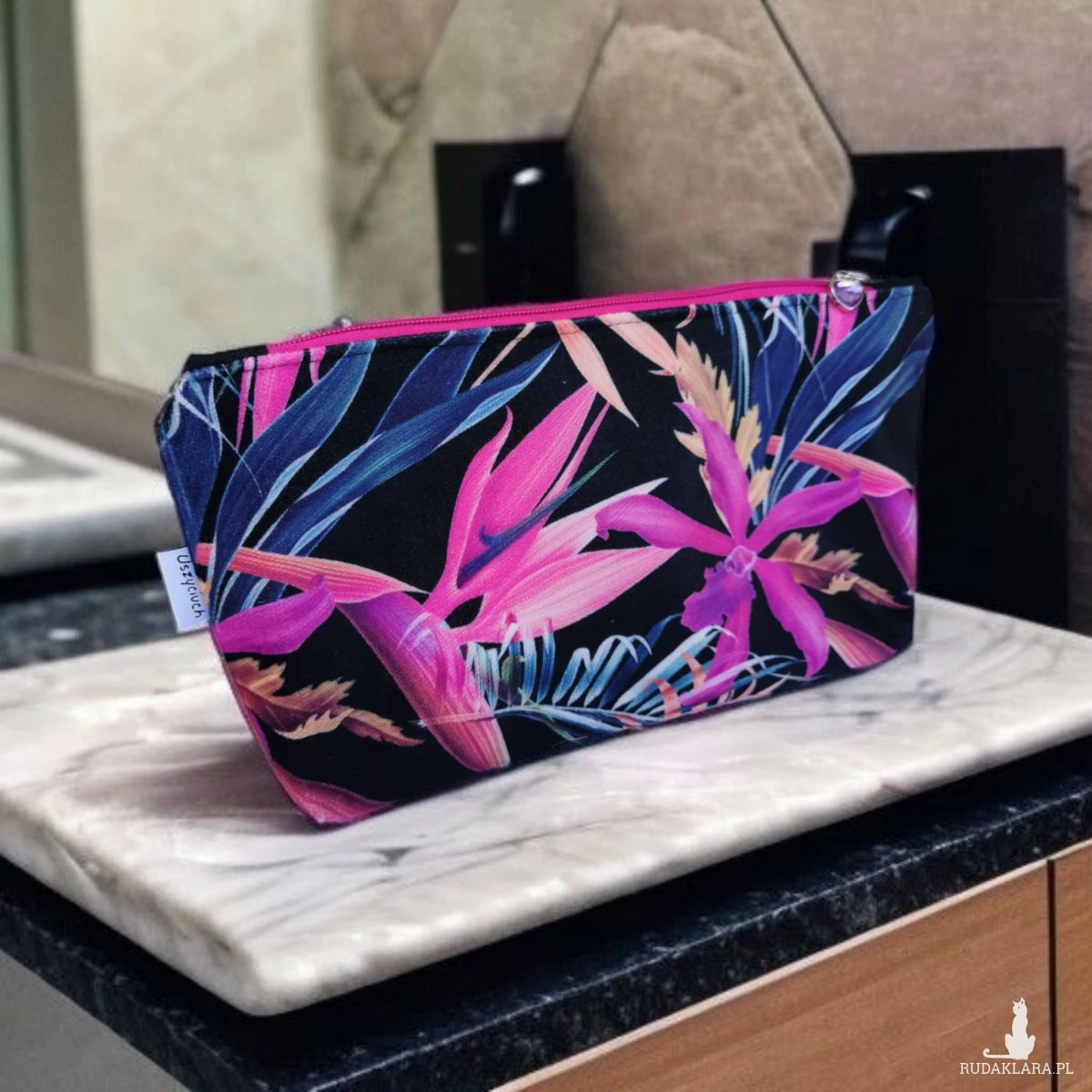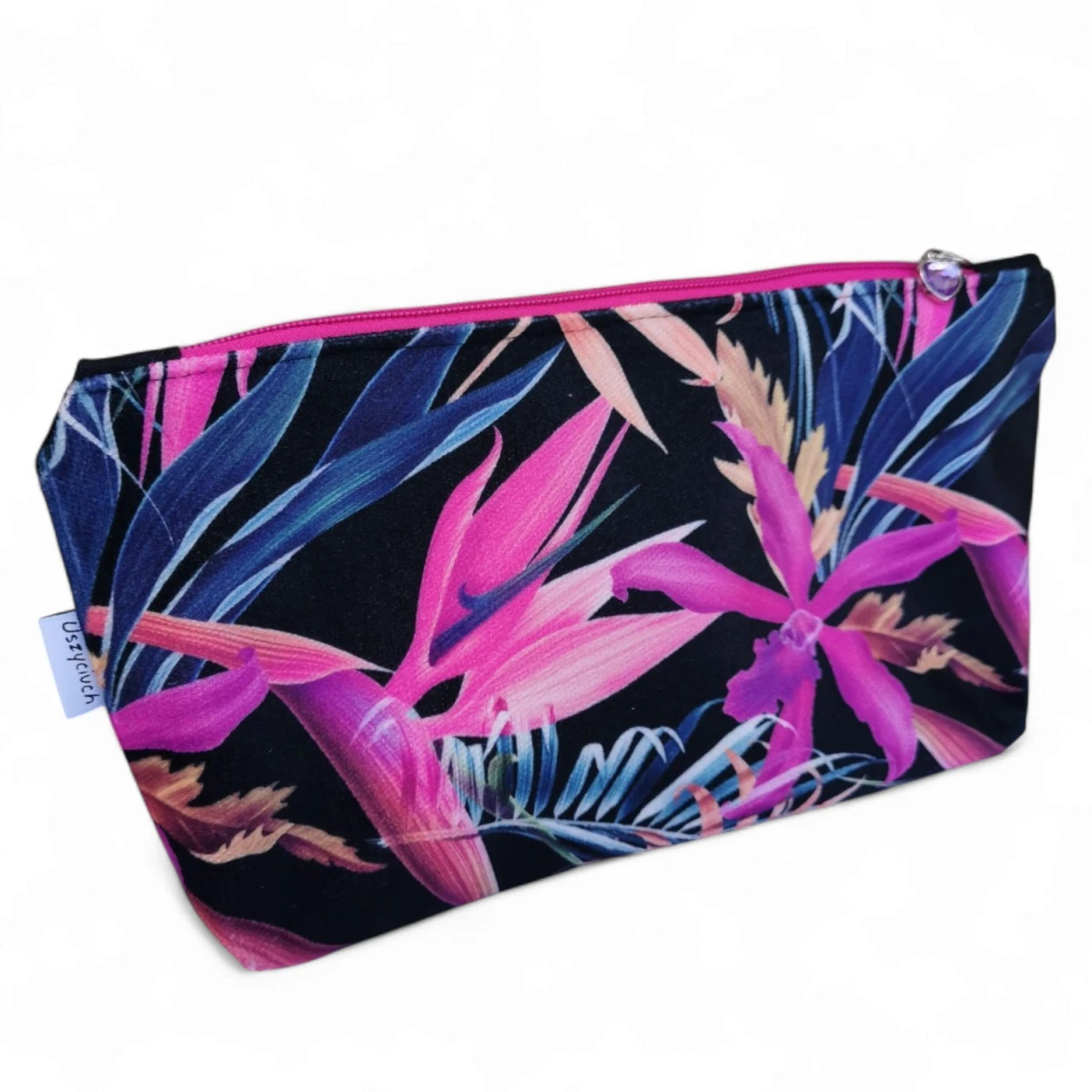 Kosmetyczka damska welurowa etui do torebki organizer do torby duża kosmetyczka kwiaty strelicja