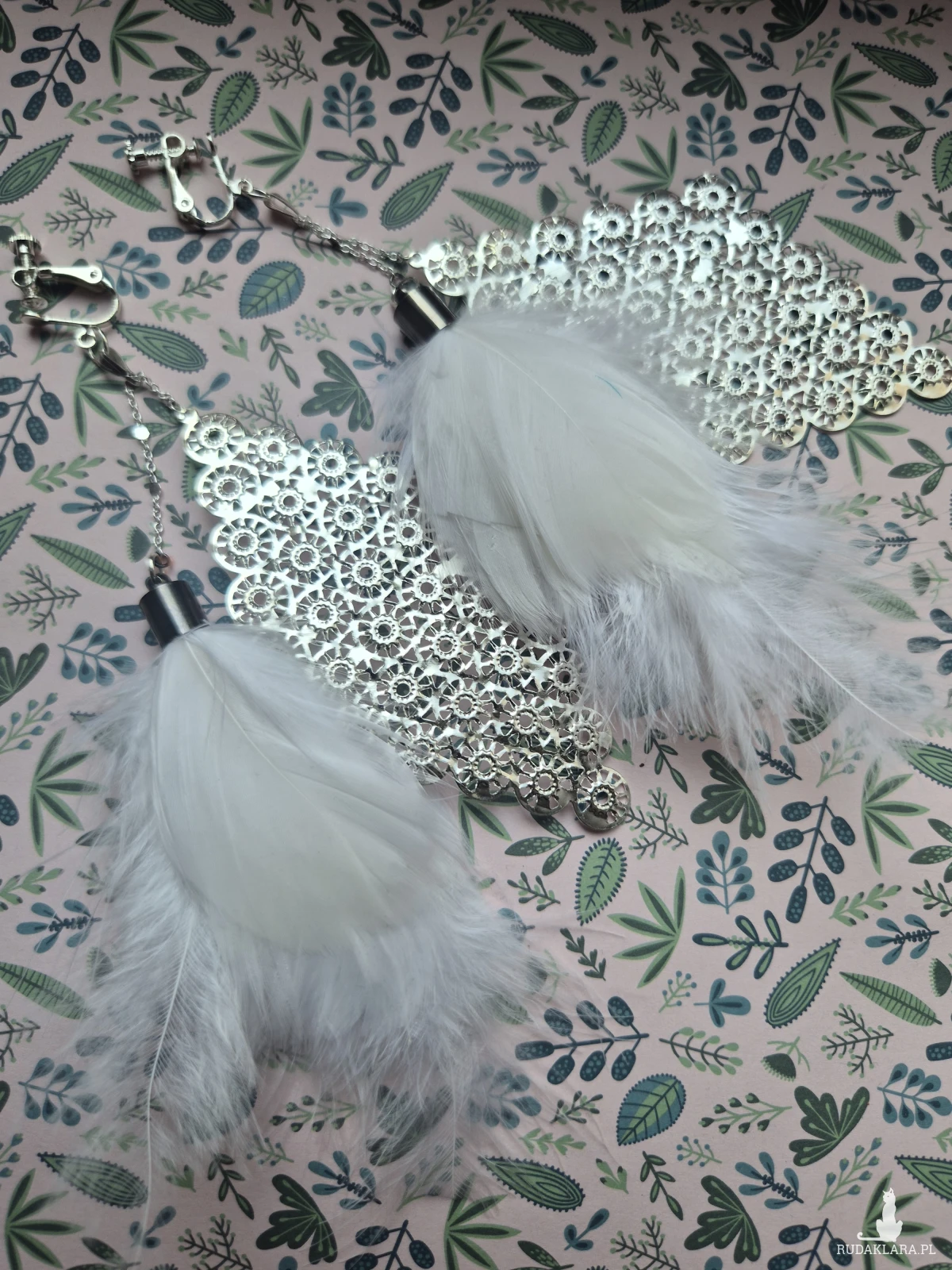 Klipsy długie białe pióra