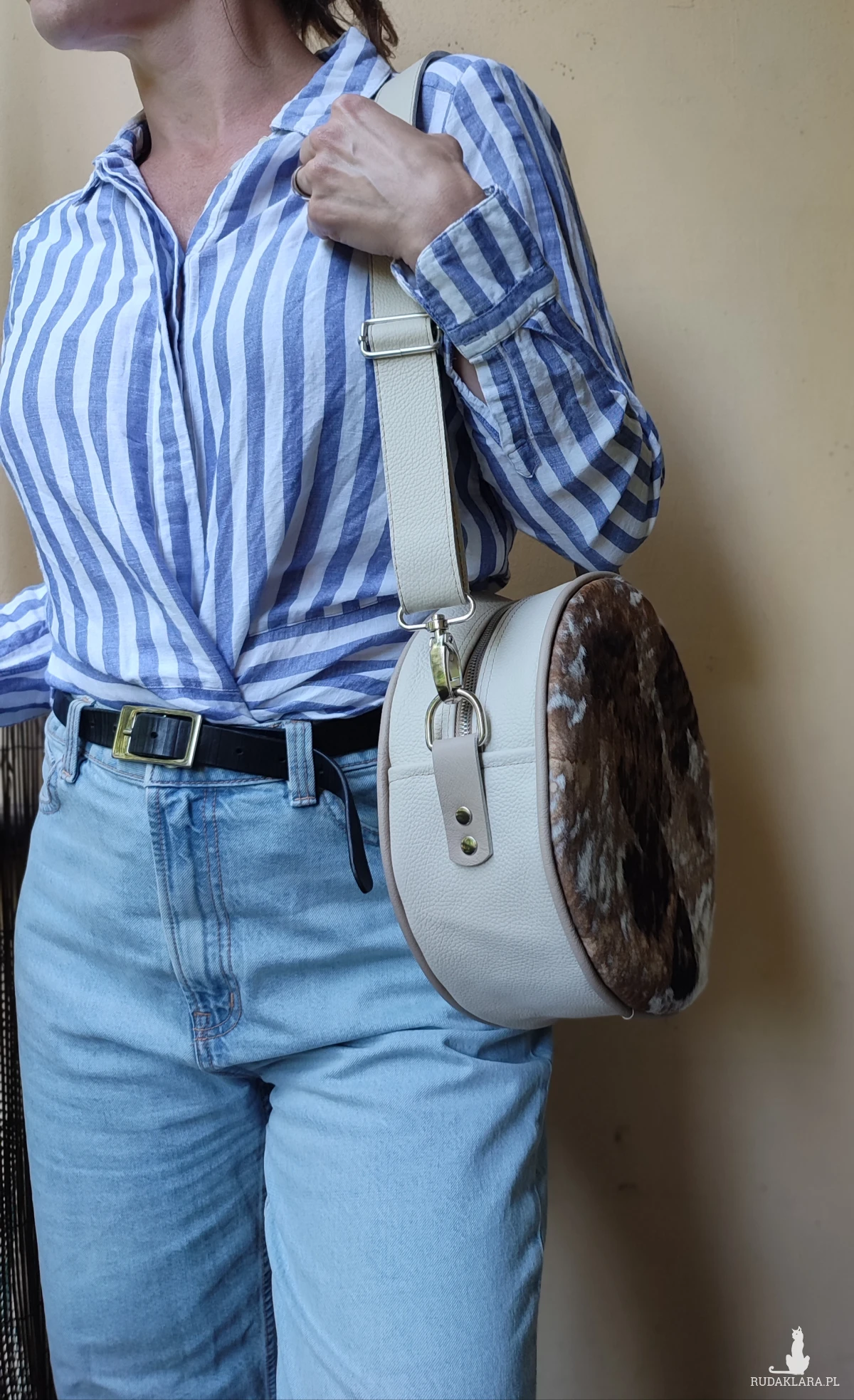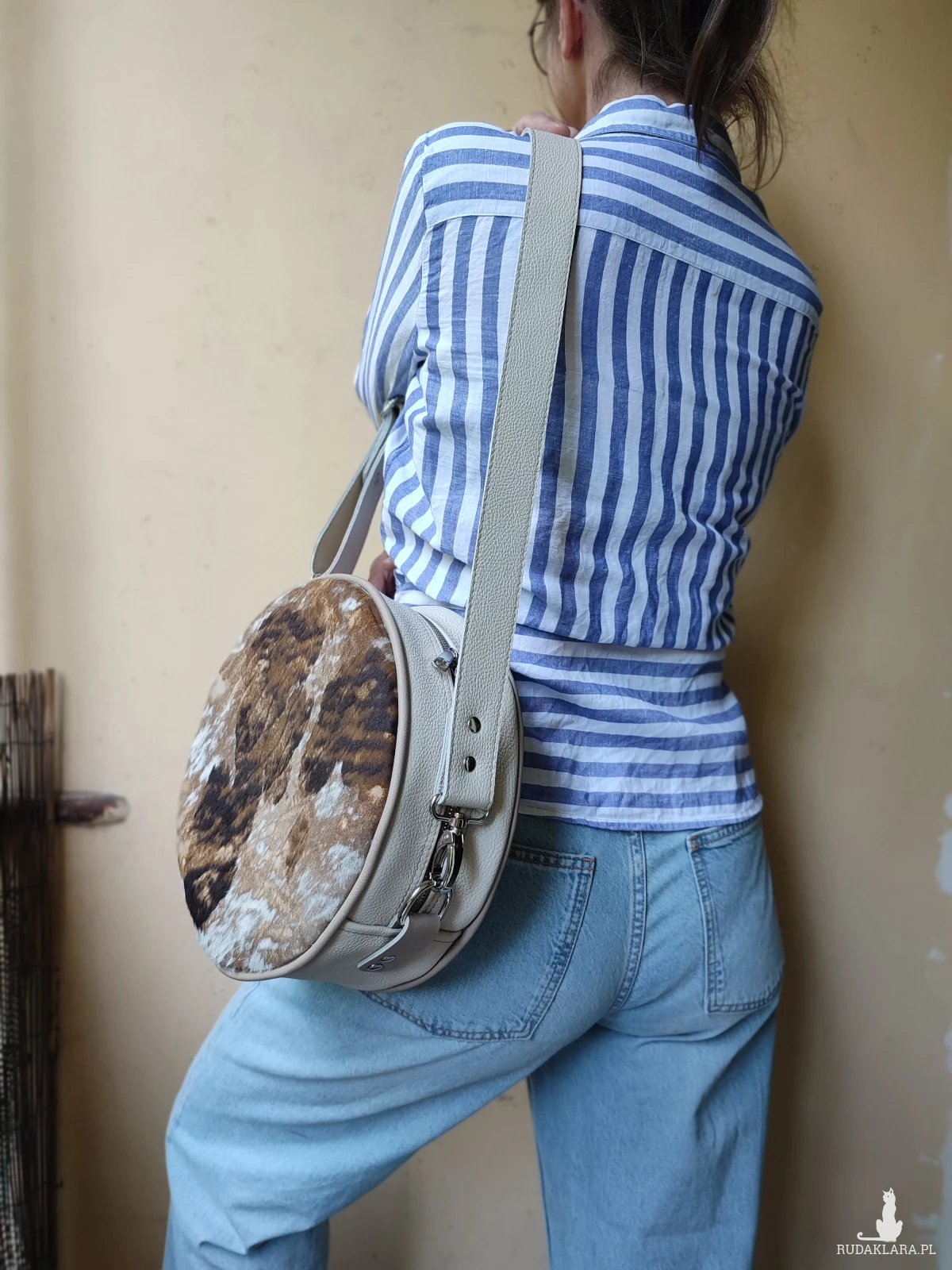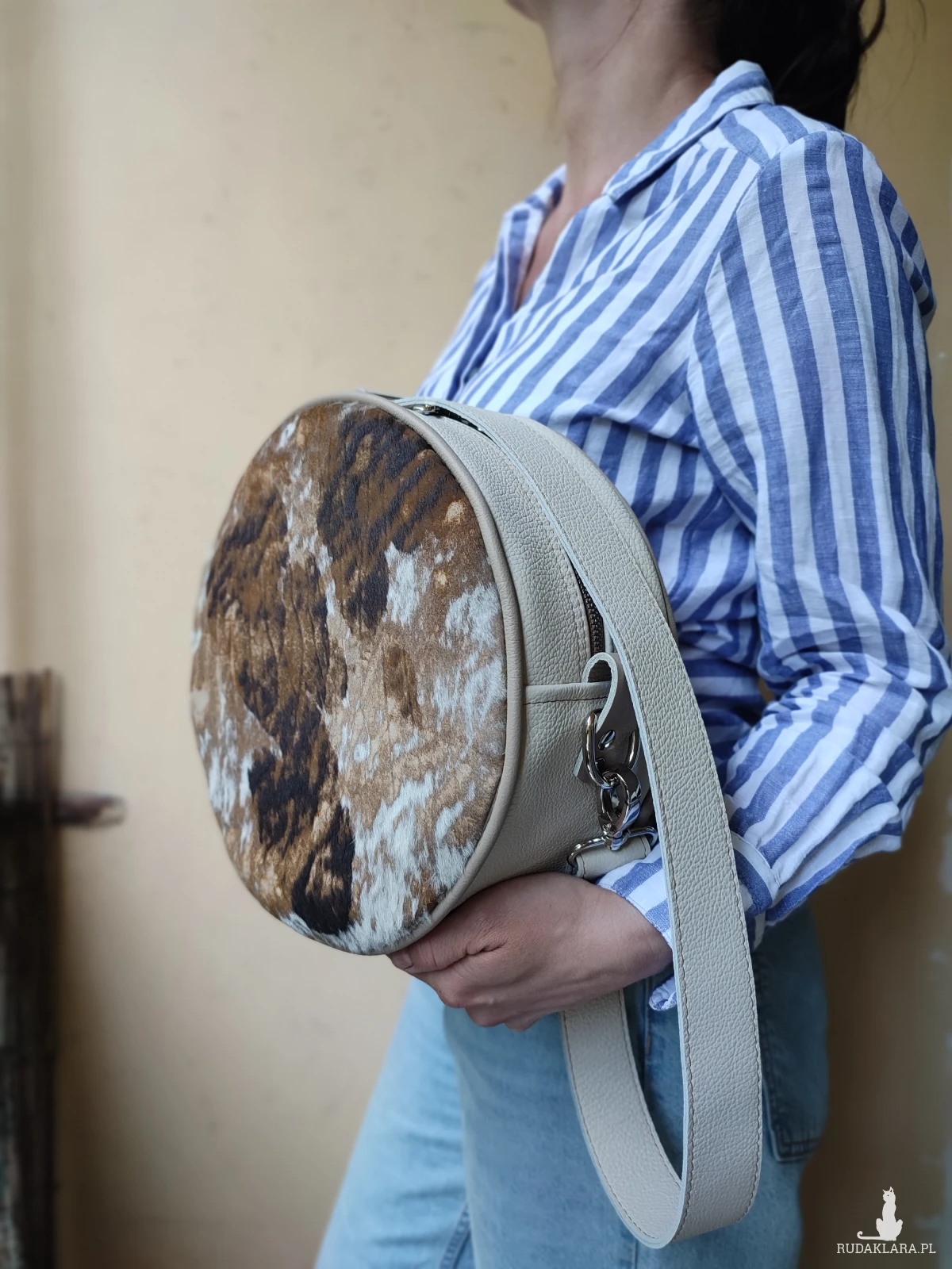 Oryginalna torebka o okrągłym kształcie, wykonana ręcznie w autorskiej pracowni z najwyższej jakości naturalnych skór. To projekt jedyny w swoim rodzaju – powstał w pojedynczym egzemplarzu, z myślą o osobach, które poszukują niepowtarzalnych dodatków z duszą.