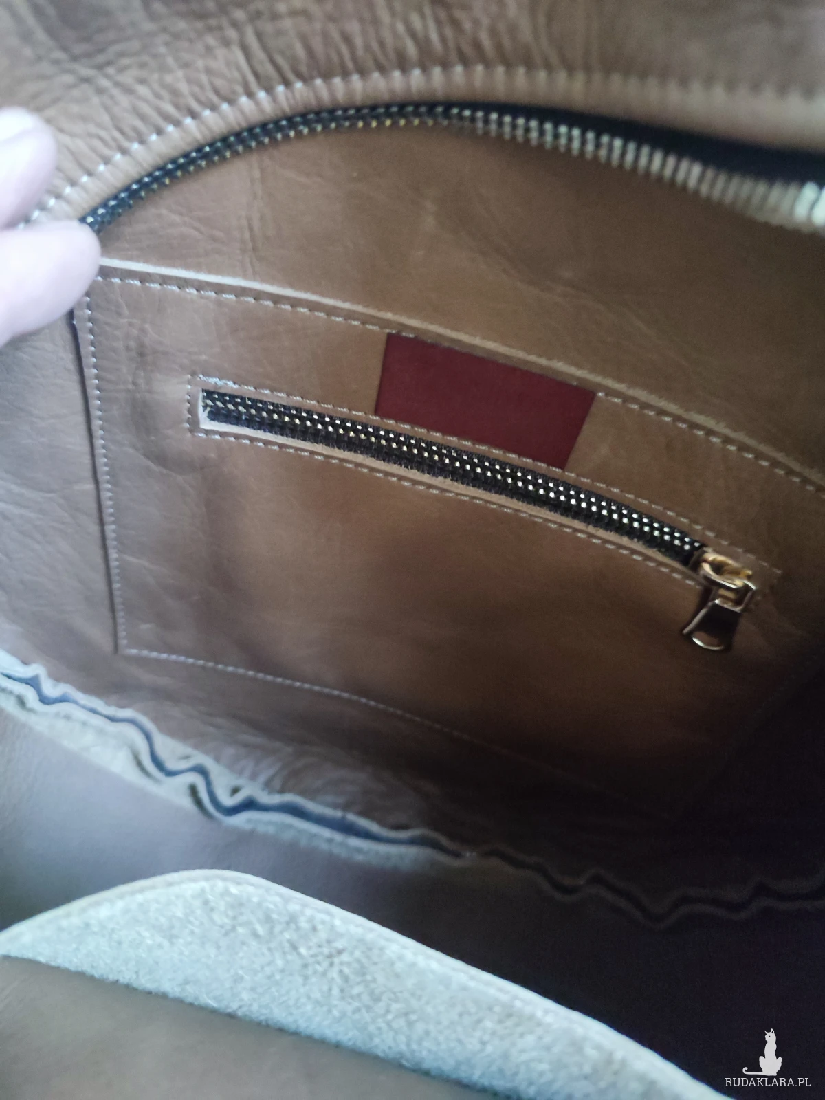 Wszystkie skóry wykorzystane do uszycia tej torebki pochodzą z nadwyżek większych produkcji – to fragmenty, które w przemyśle często trafiają do kosza. W mojej pracowni zyskują drugie życie. Projektuję i szyję zgodnie z zasadą: „nic nie może się zmarnować”.