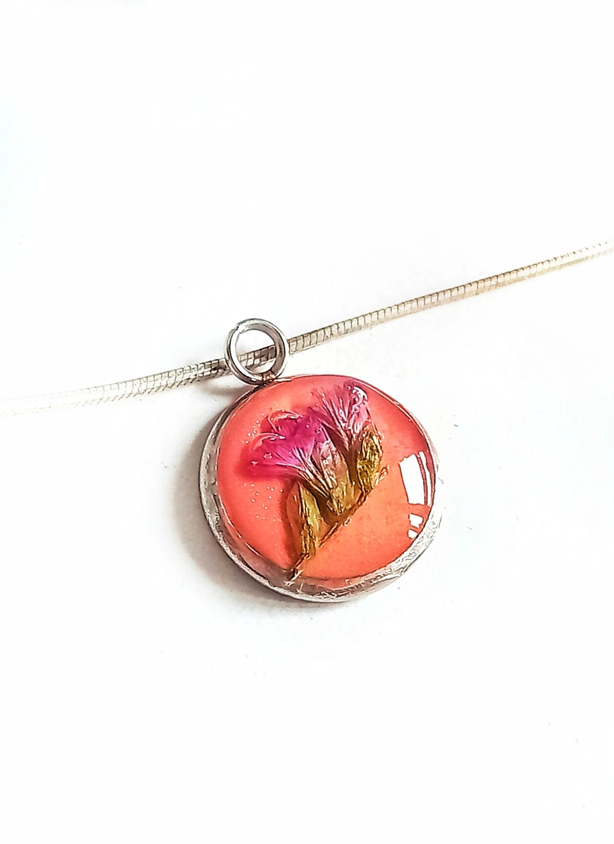 zawieszka handmade, biżuteria z zatrawianem, zawieszka z żywicy, stal nierdzewna zawieszka, naszyjnik z kwiatem, prezent handmade, subtelna biżuteria z żywicy, zawieszka z suszonymi kwiatami, oryginalna biżuteria ręcznie robiona