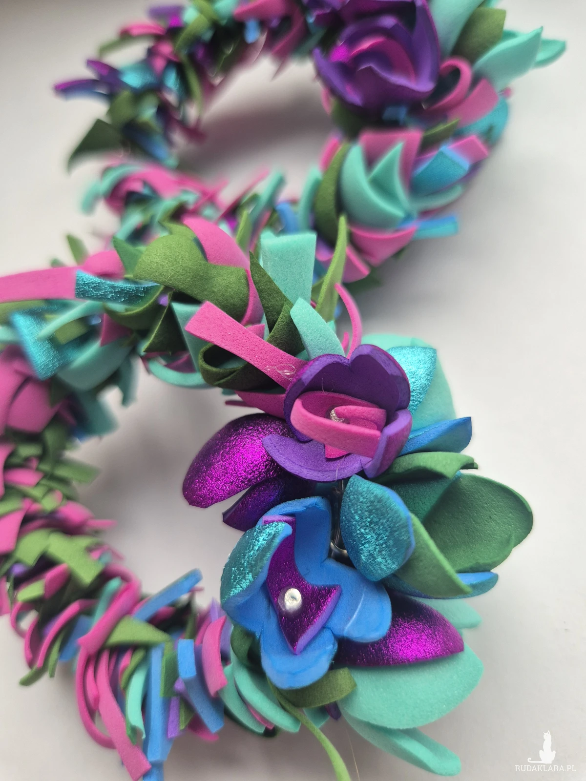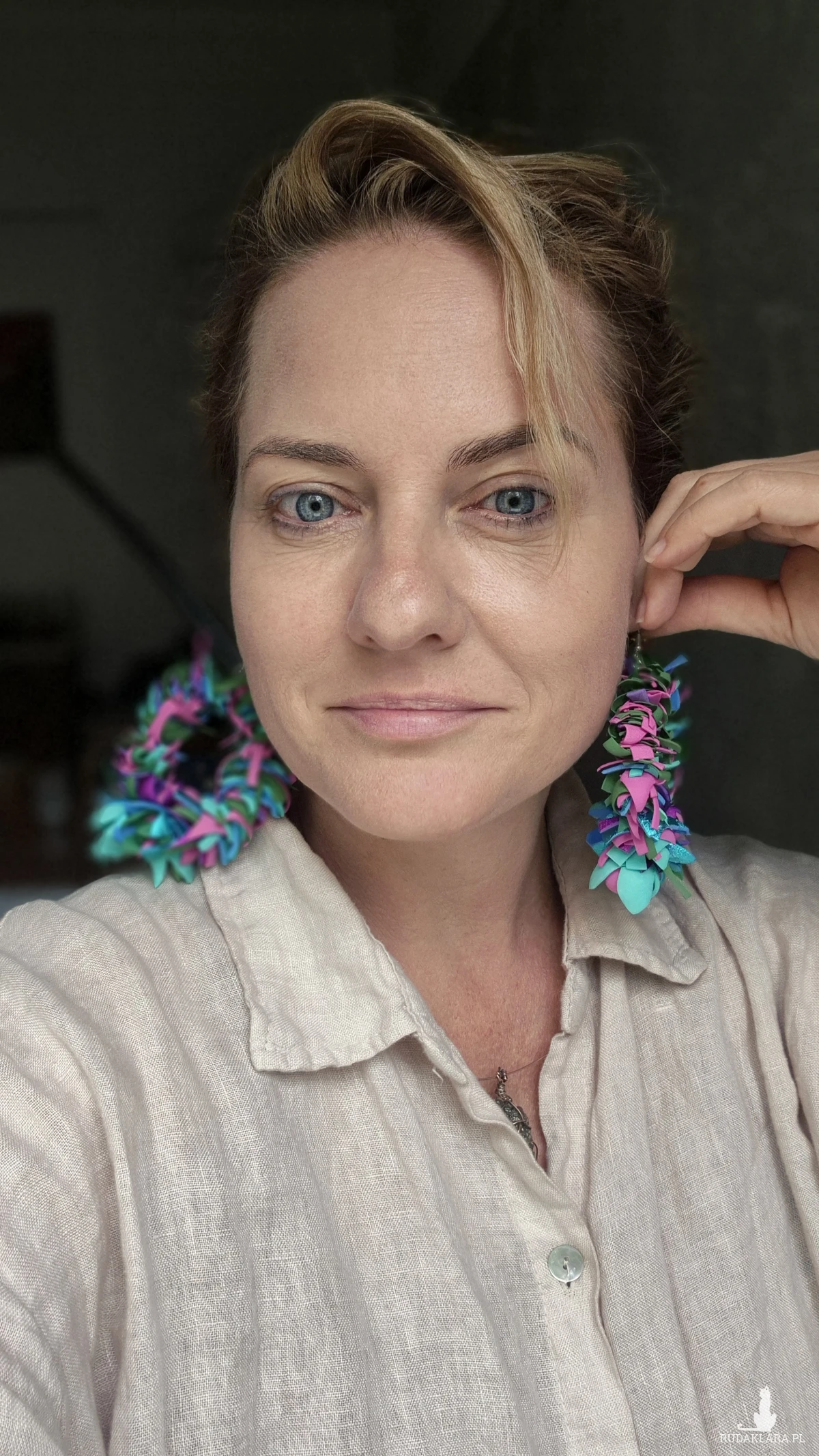 Kolczyki bujne zwariowane kwiaty na bazie koła lekkie duże  cudowne kolory polecam