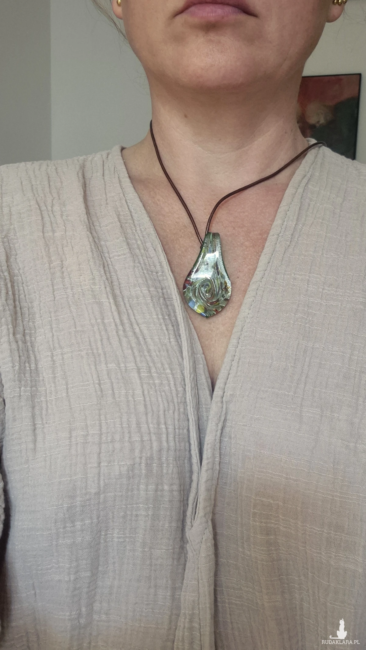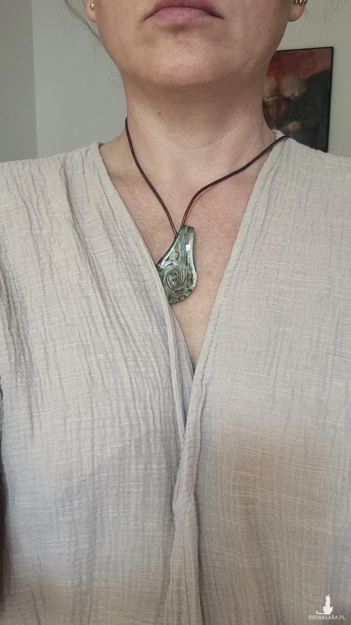Naszyjnik z z zielonym wisiorem na rzemyku