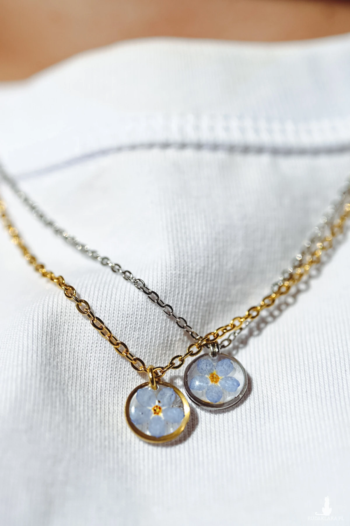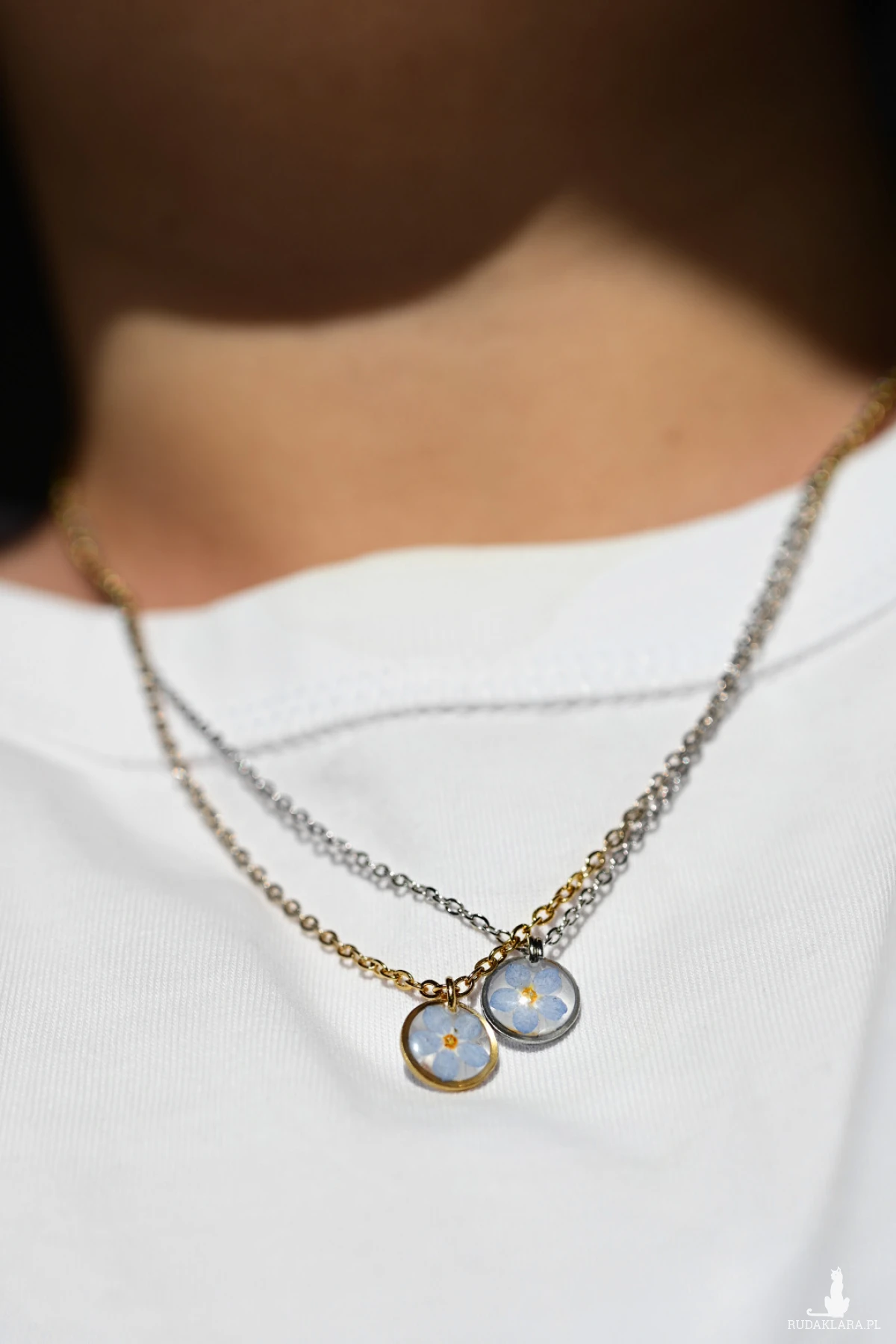 Naszyjnik z prawdziwymi kwiatami to niepowtarzalny prezent o oryginalnym kształcie, który zachwyci każdego! Biżuteria wykonana jest z wysokiej jakości żywicy epoksydowej, odpornej na działanie promieni UV, oraz dodatków ze stali chirurgicznej. W środku naszyjnika znajduje się zasuszony przeze mnie kwiat niezapominajki polskiej, symbolizujący pamięć i wierność.