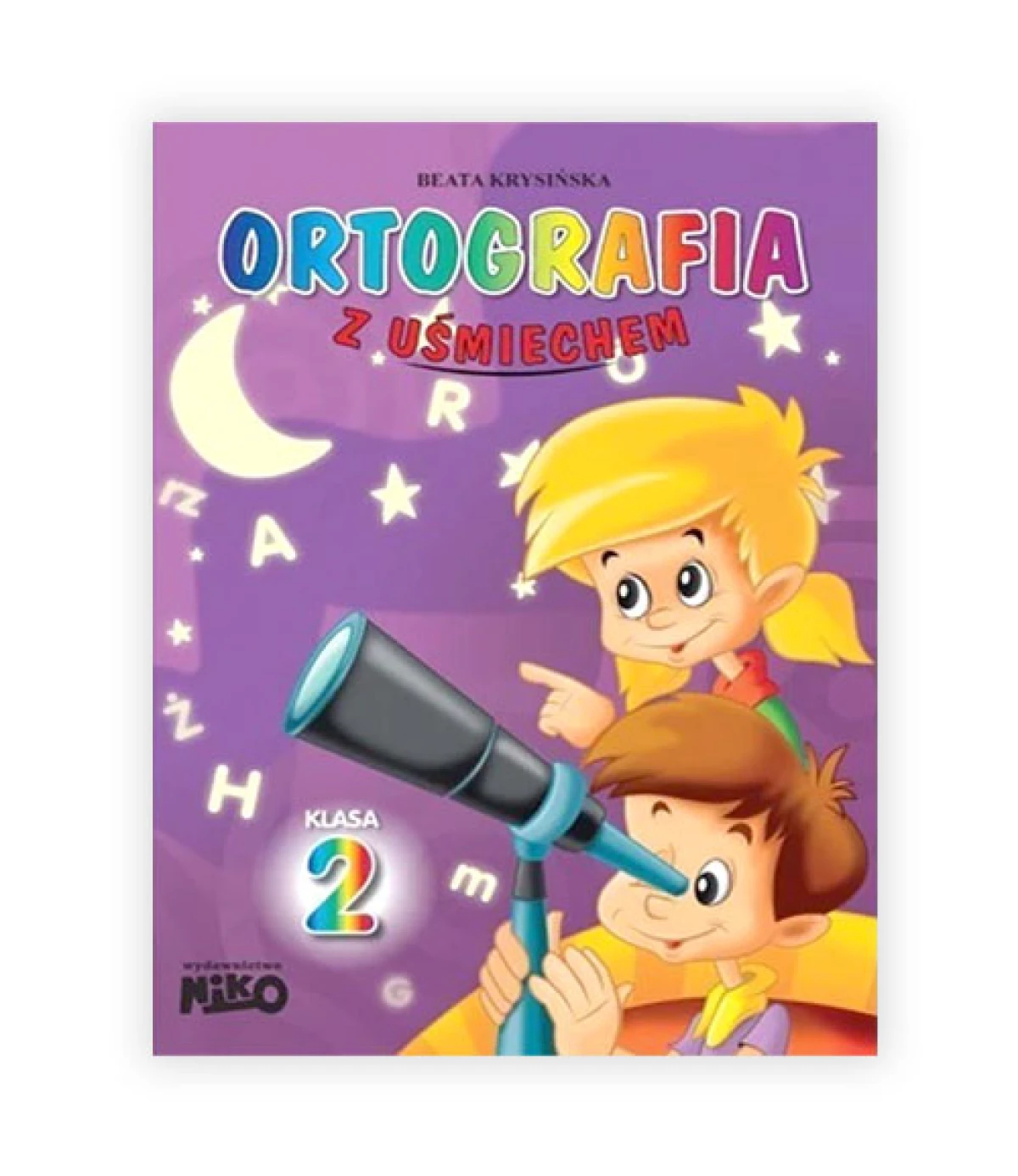 Nowa książka pt. "Ortografia z uśmiechem klasa 2 ", autorka: Beata Krysińska, miękka okładka, 56 strony, kolorowe ilustracje, ćwiczenia dla dzieci do nauki języka polskiego.