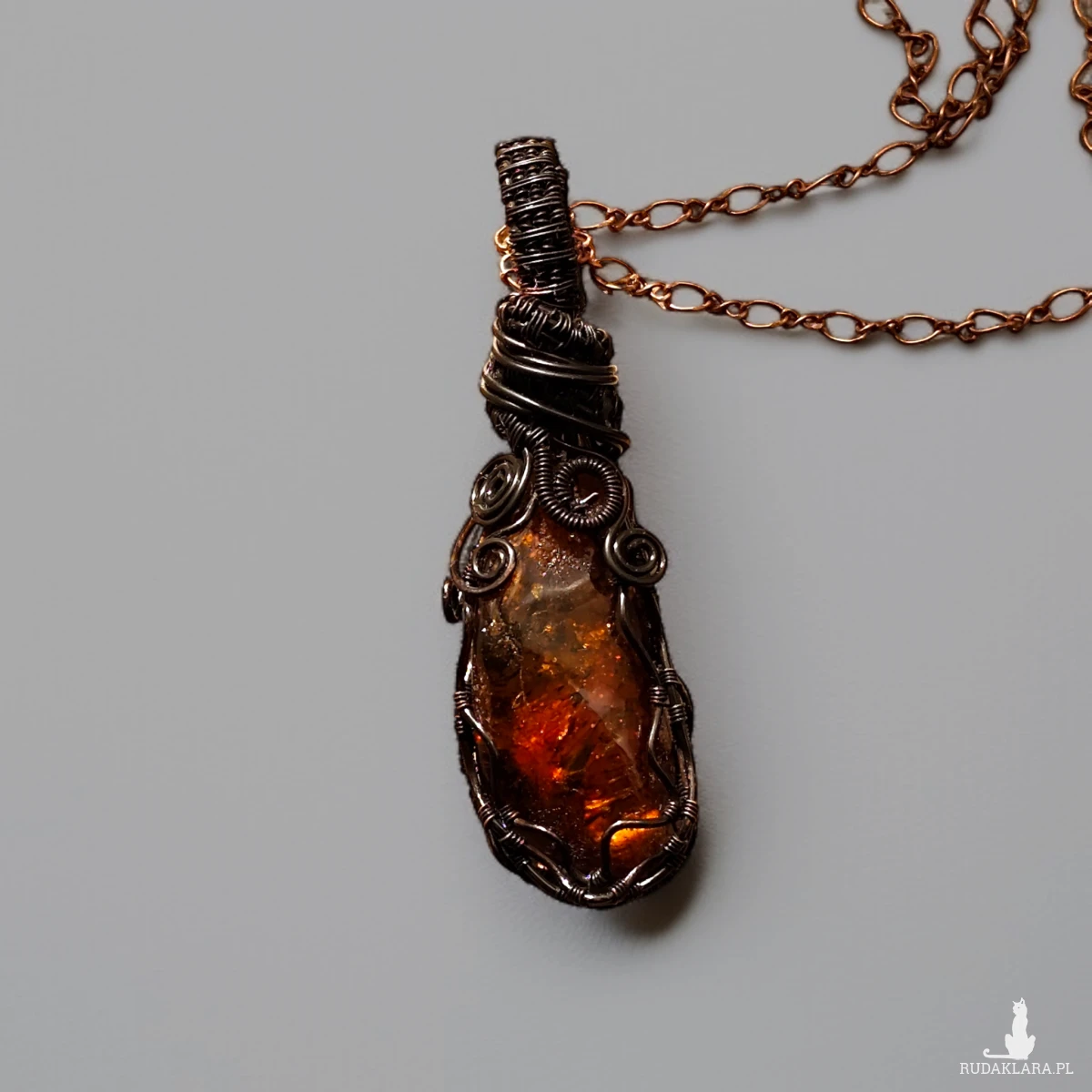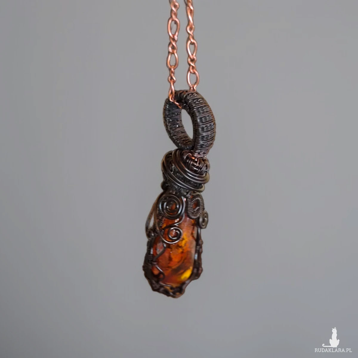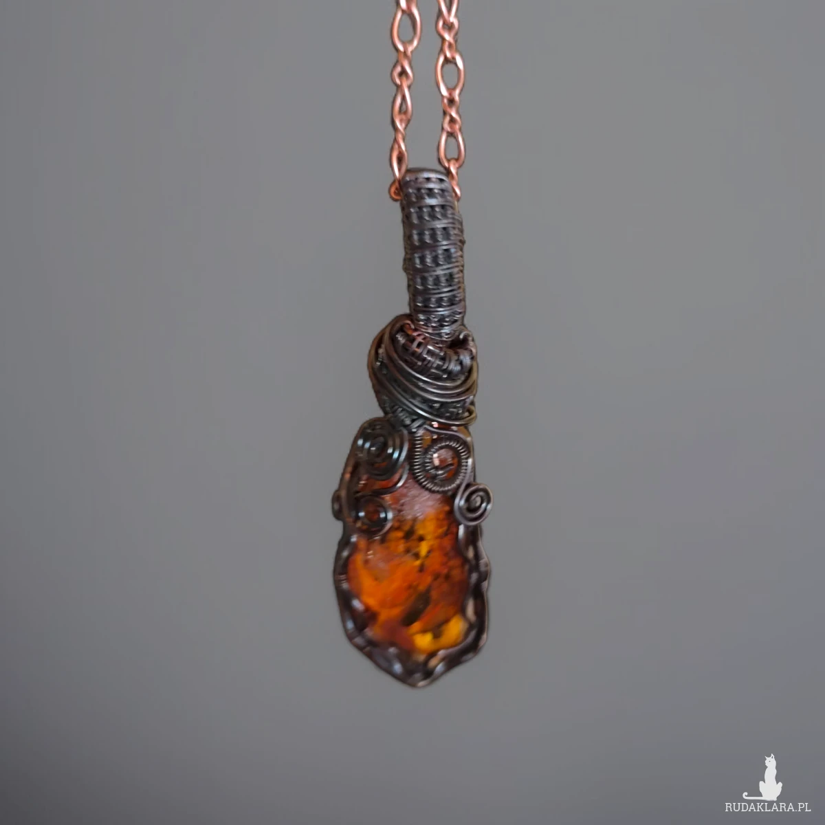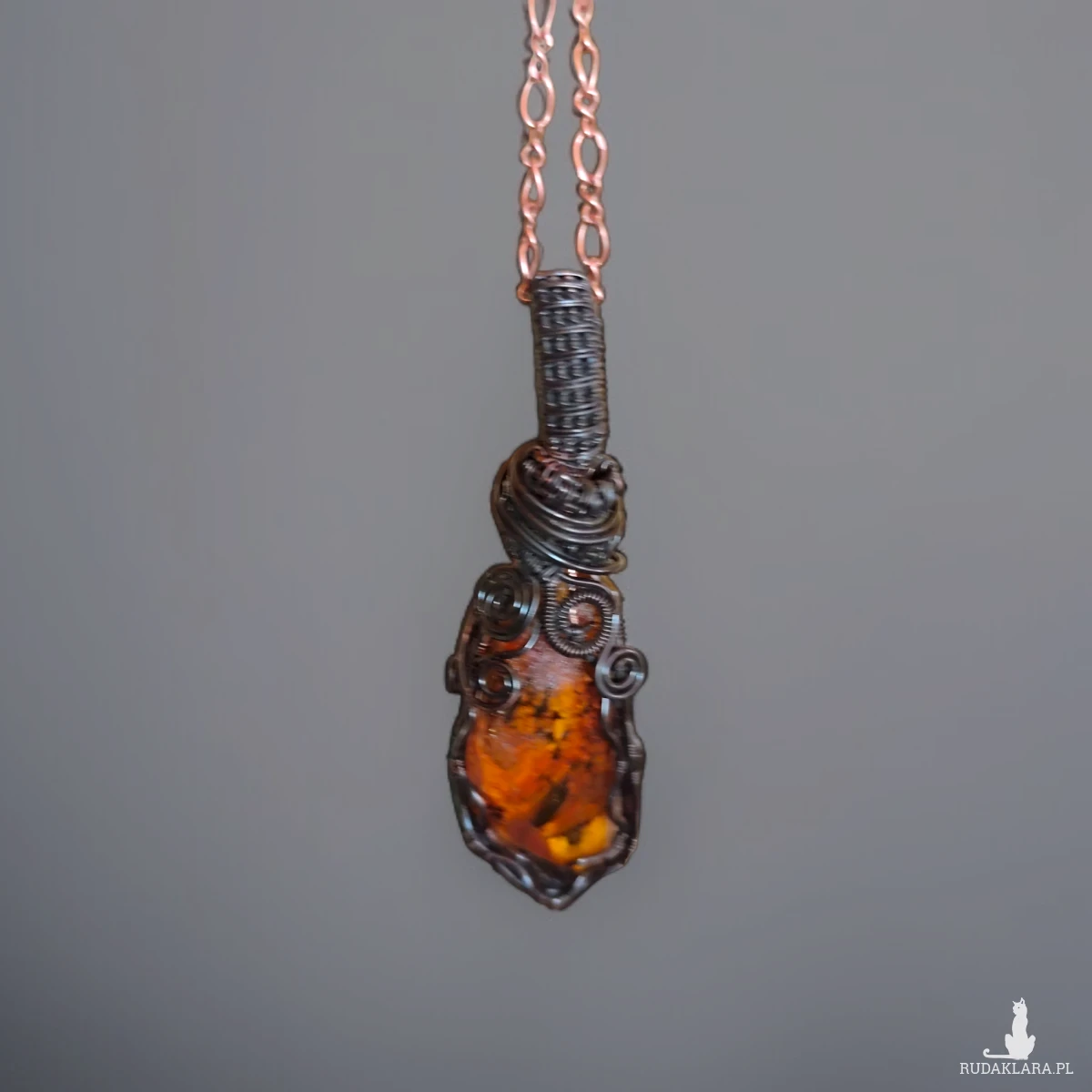 * Materiał: Surowy bursztyn bałtycki, czysta miedź oksydowana