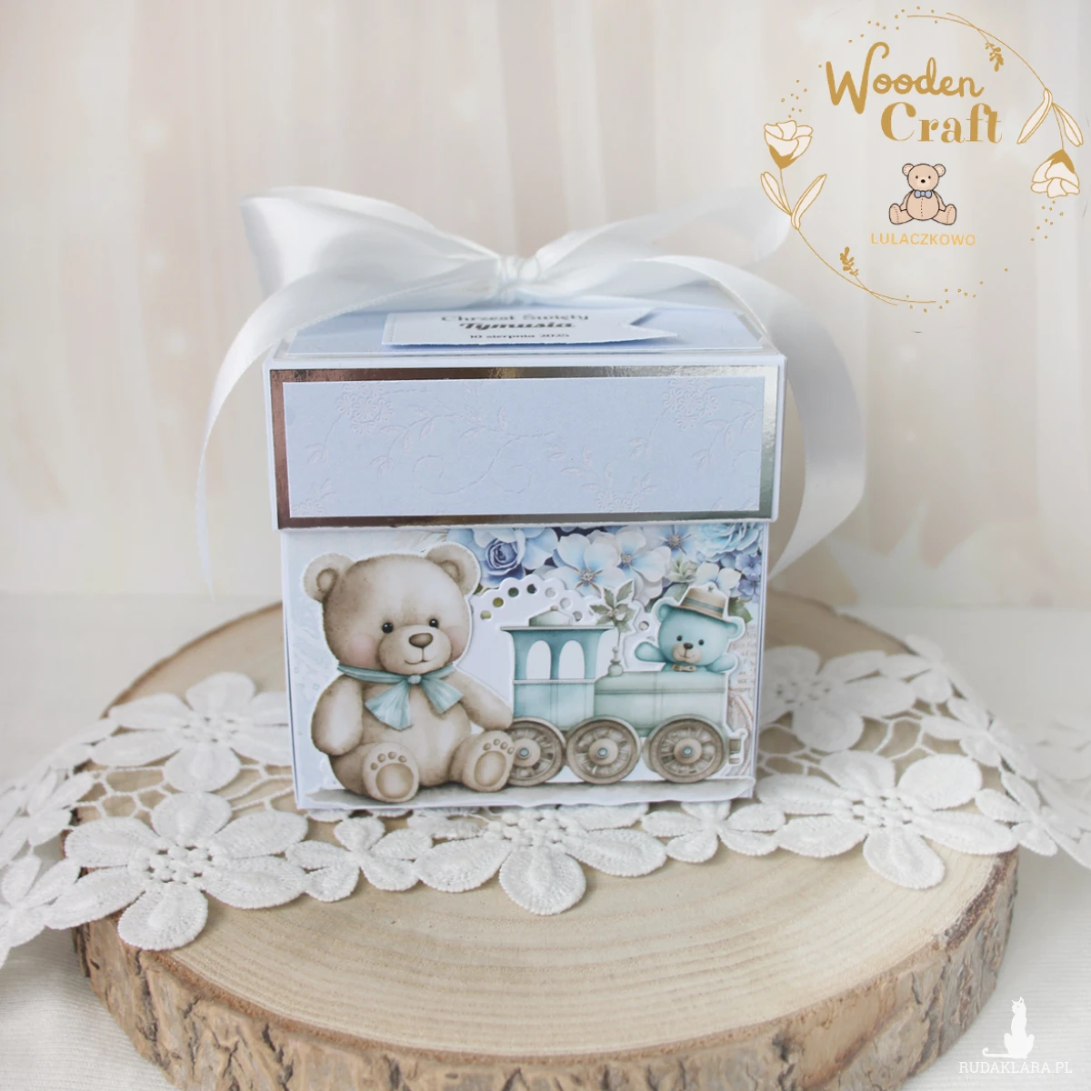 Box będzie pięknym prezentem dla chłopca z okazji Chrztu Świętego, narodzin, roczku lub urodzin.