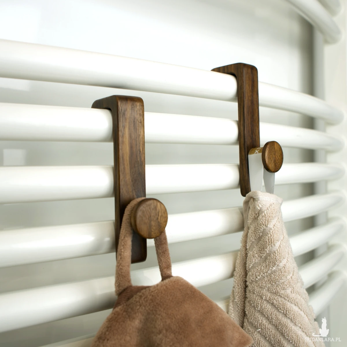 Drewniany haczyk na grzejnik – naturalny wieszak łazienkowy