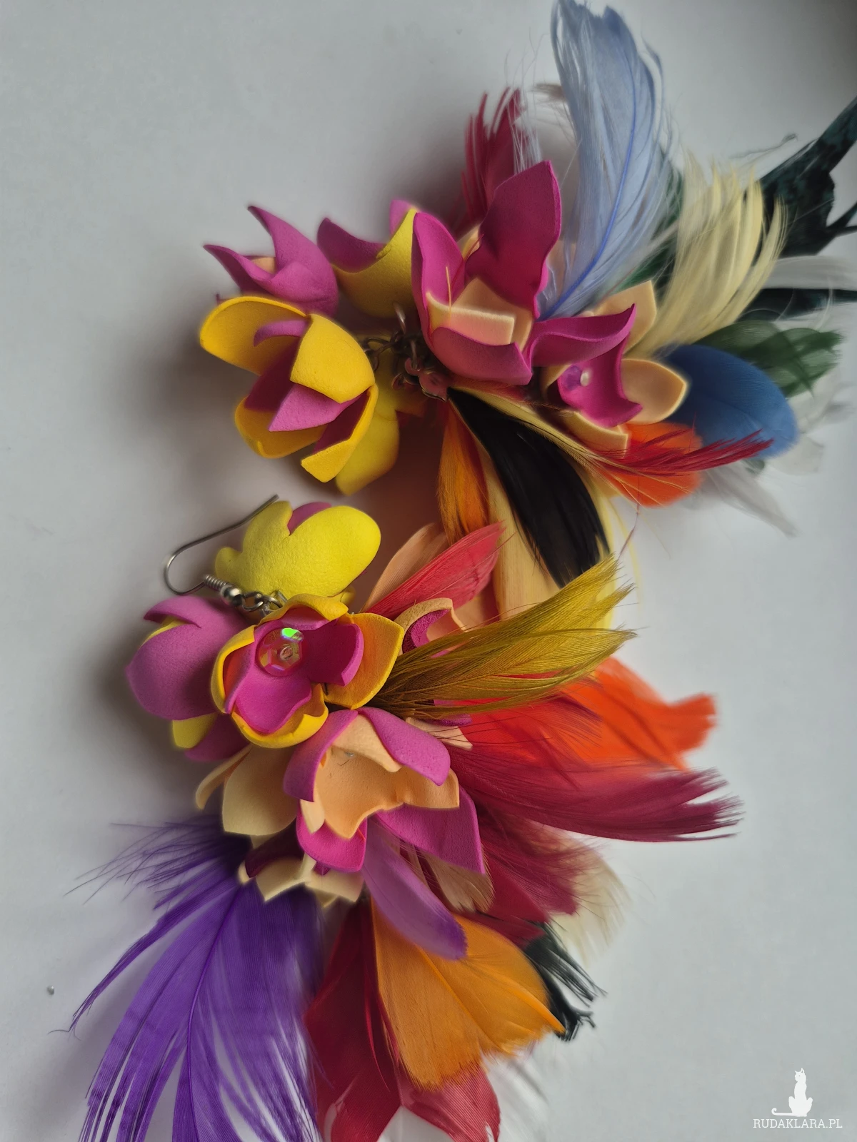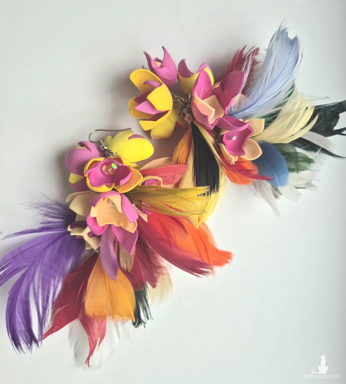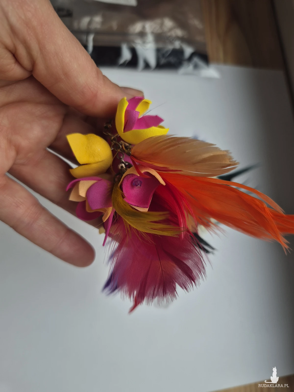 Kolczyki kwiaty pióra zwariowane duże leciutkie obłędne zwracają uwagę totalnie polecam