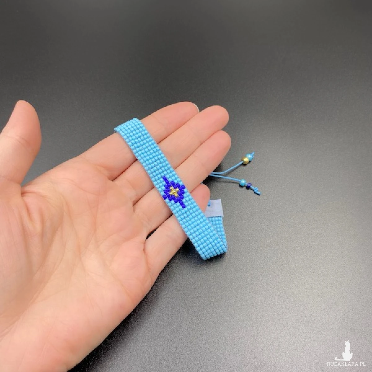 Bransoletka została utkana na krośnie z koralików Toho. Jest bardzo plastyczna i swobodnie układa się na nadgarstku.