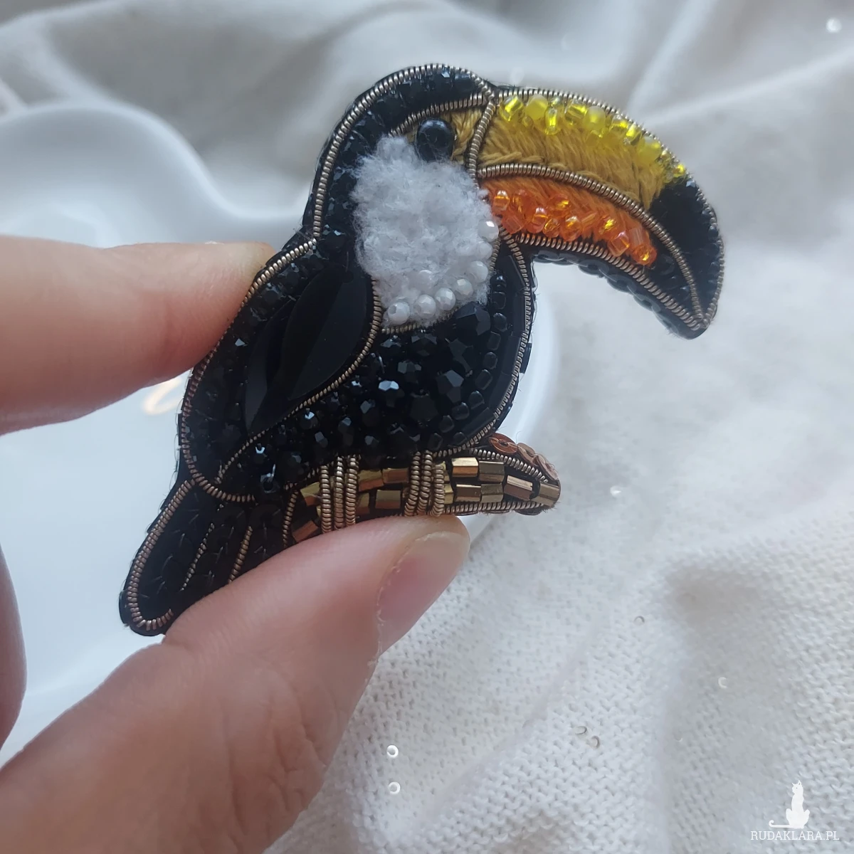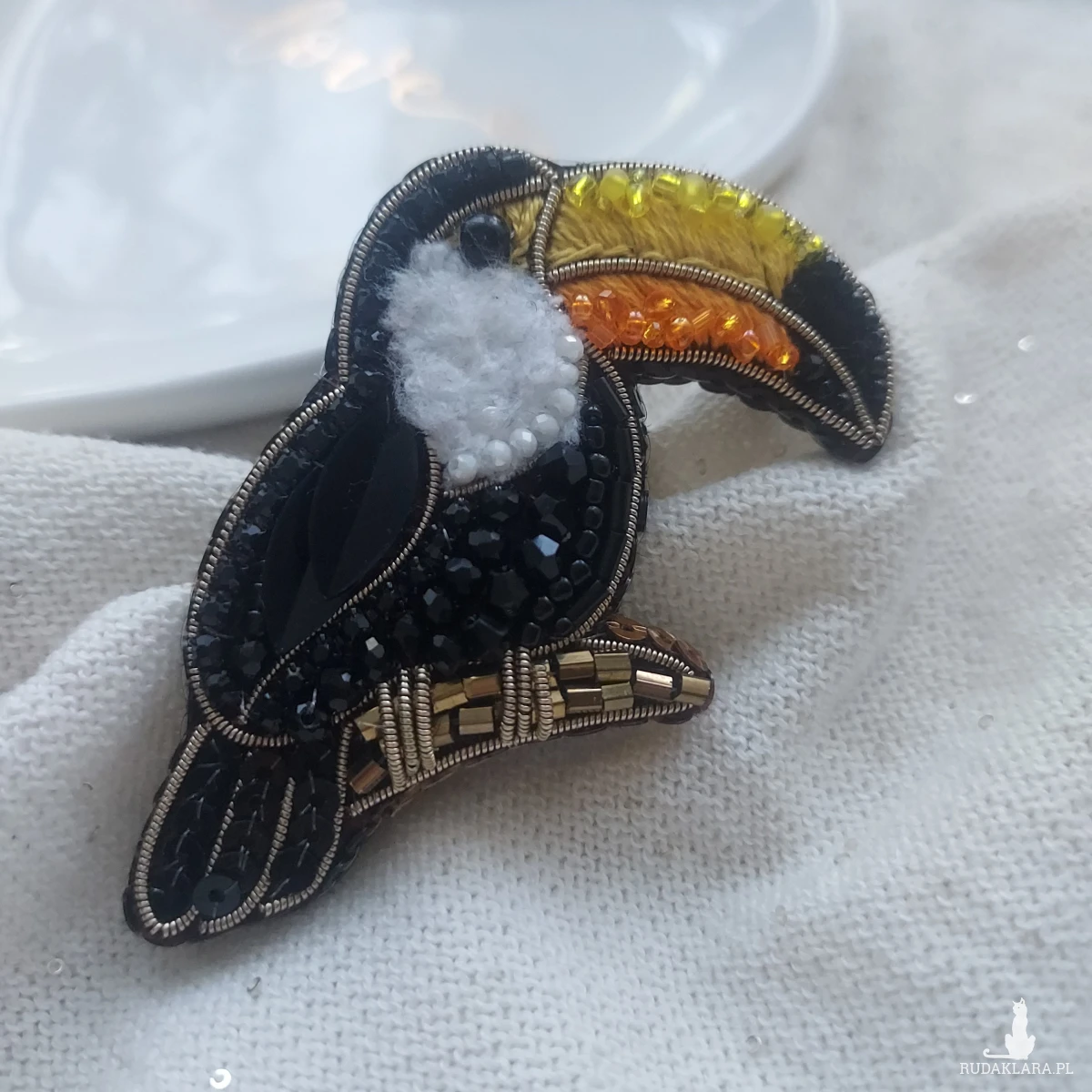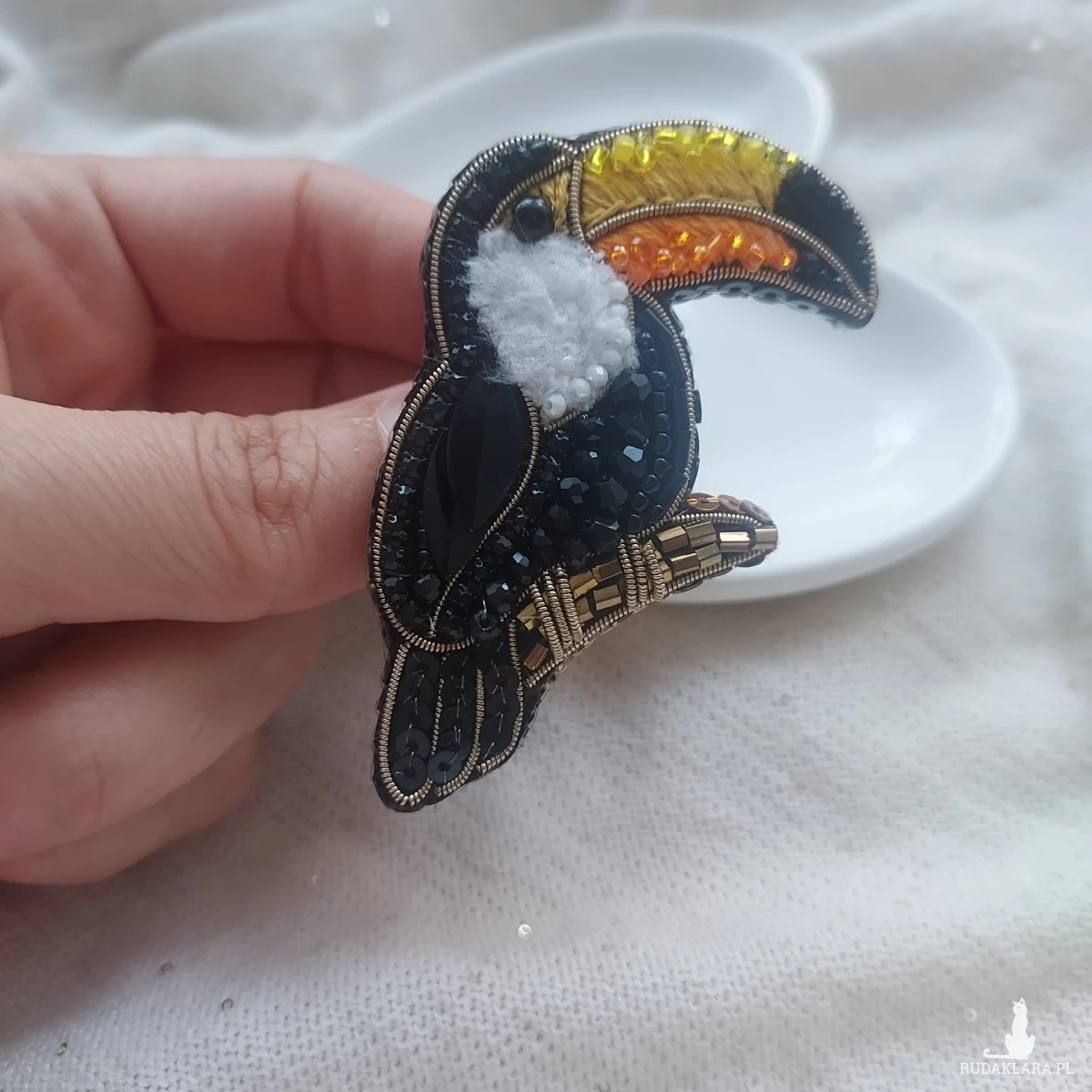 Wyjątkowa, orginalna broszka TUKAN - nie da się jej nie zauważyć nie tylko miłośniczkom ptaków oraz egzotyki.