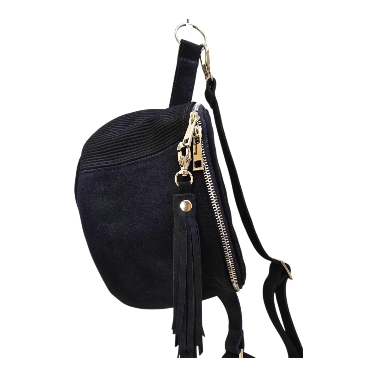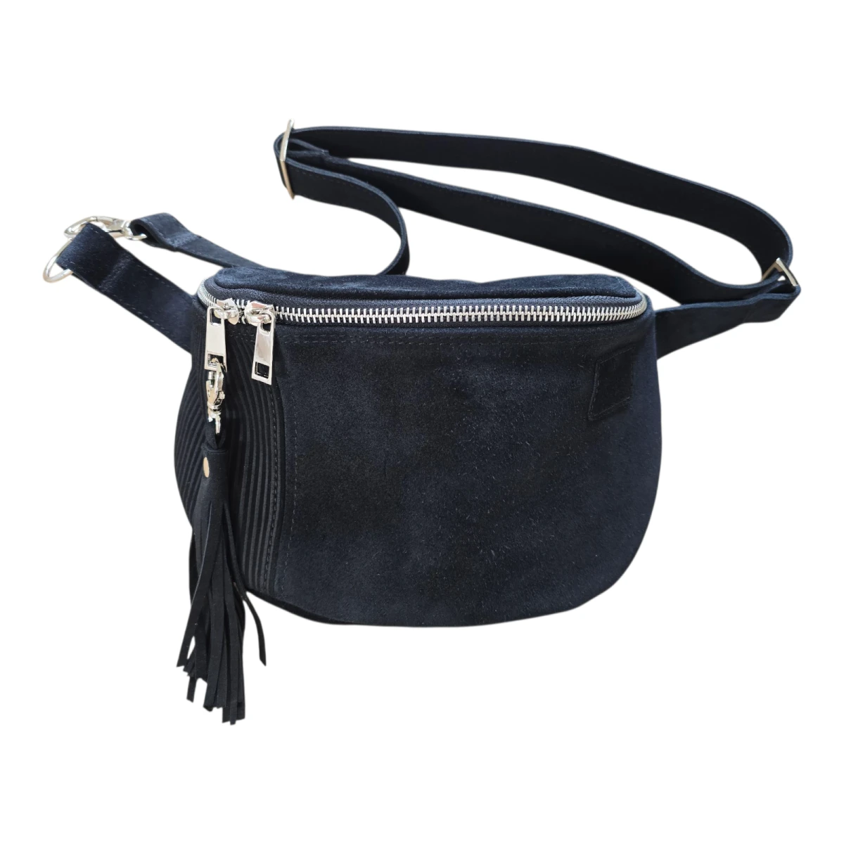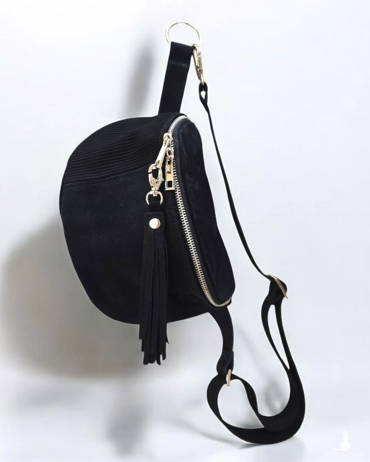 Wykonana z miękkiej skóry zamszowej w ponadczasowym czarnym kolorze.