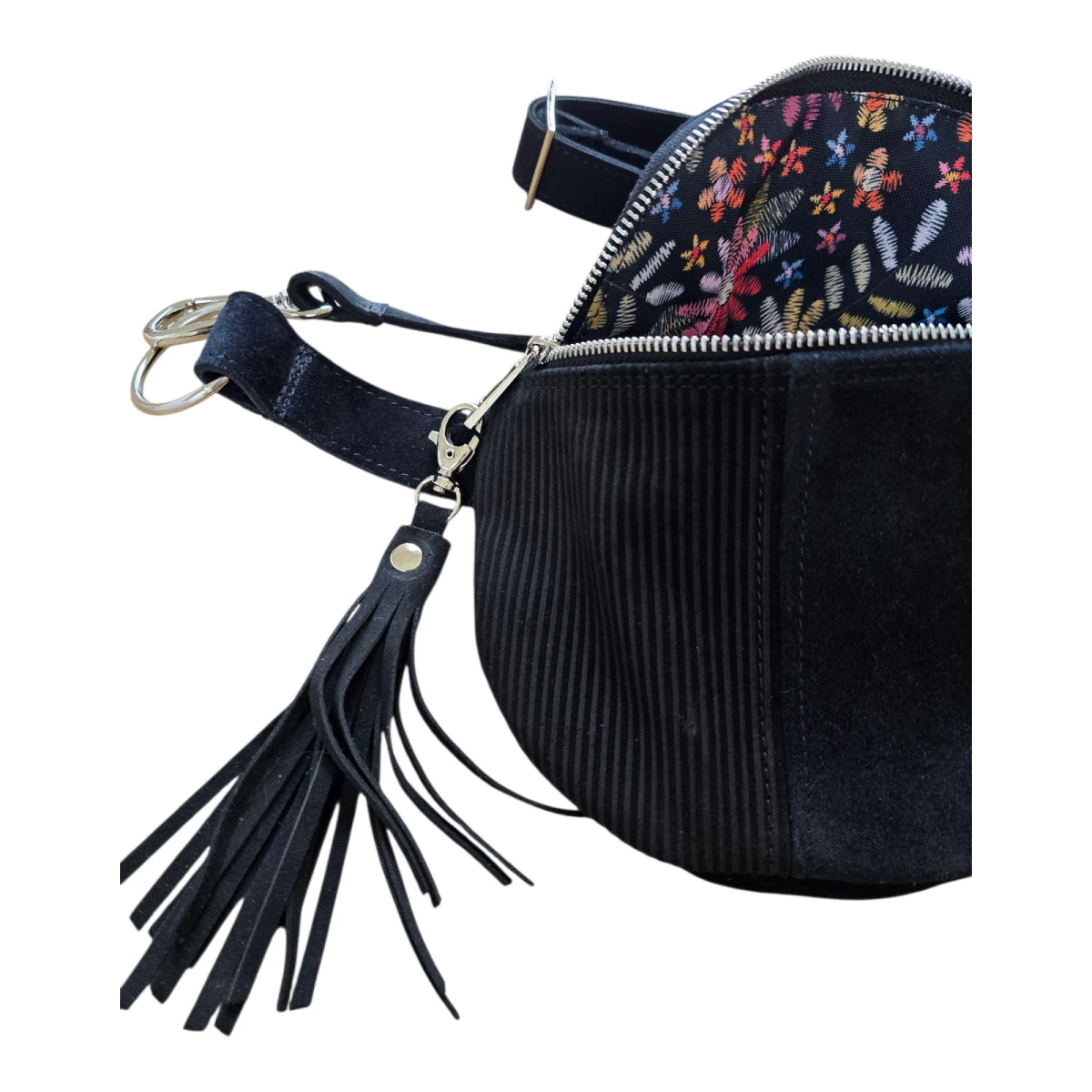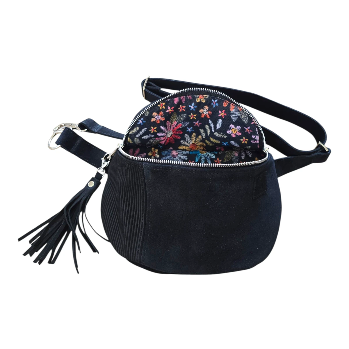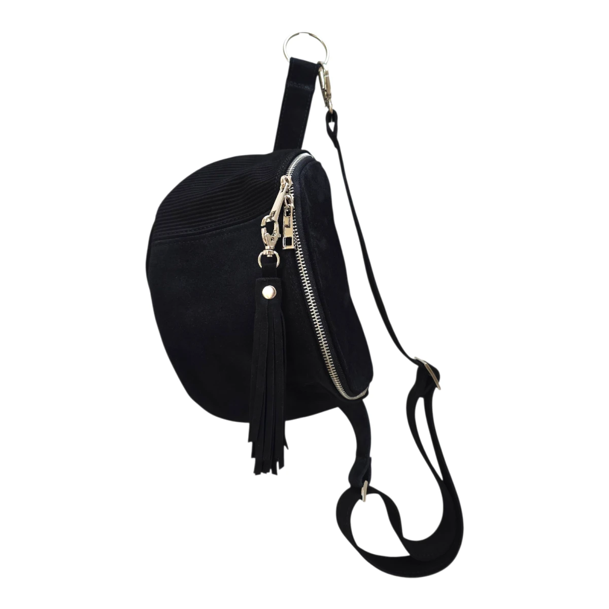 Wykonana z miękkiej skóry zamszowej w ponadczasowym czarnym kolorze.