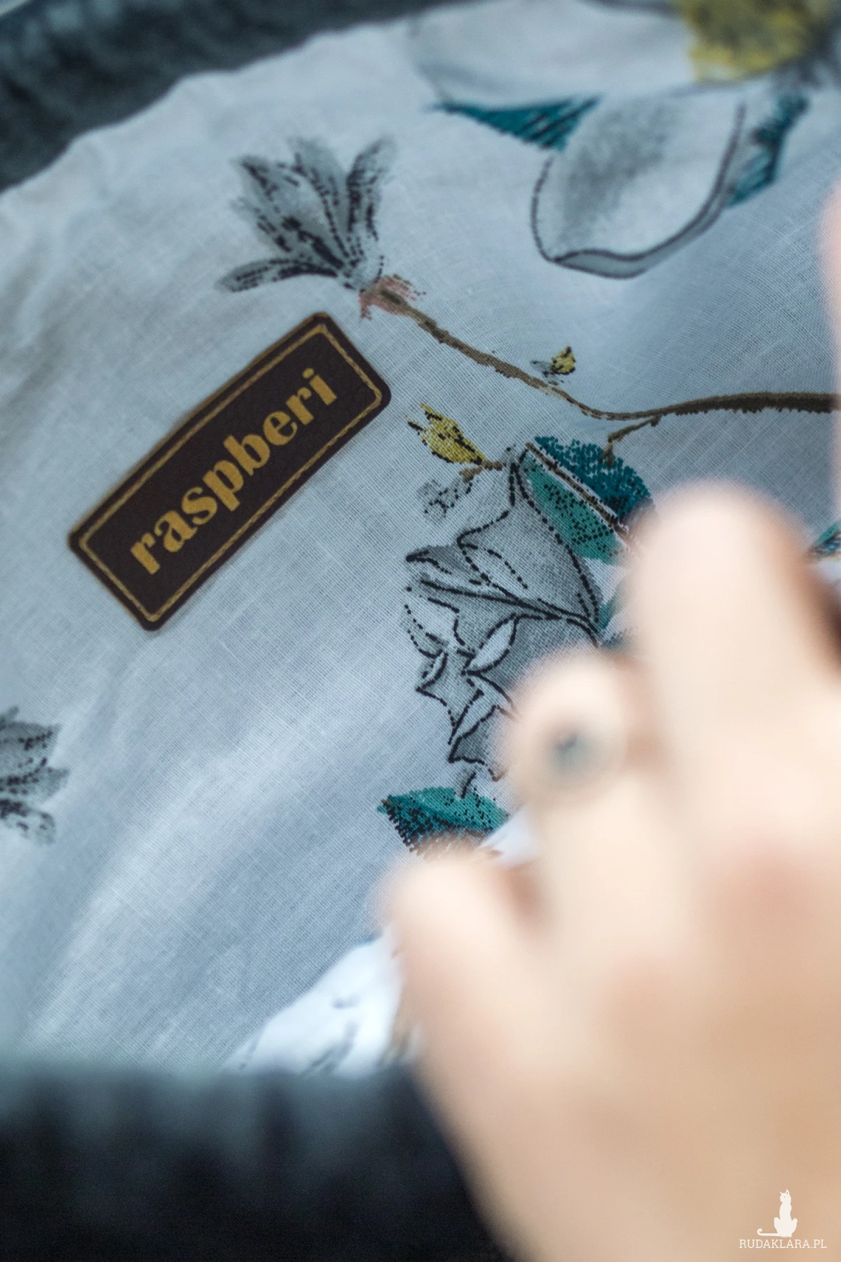 Biała, wzorzysta, bawełniana podszewka w kwiaty.