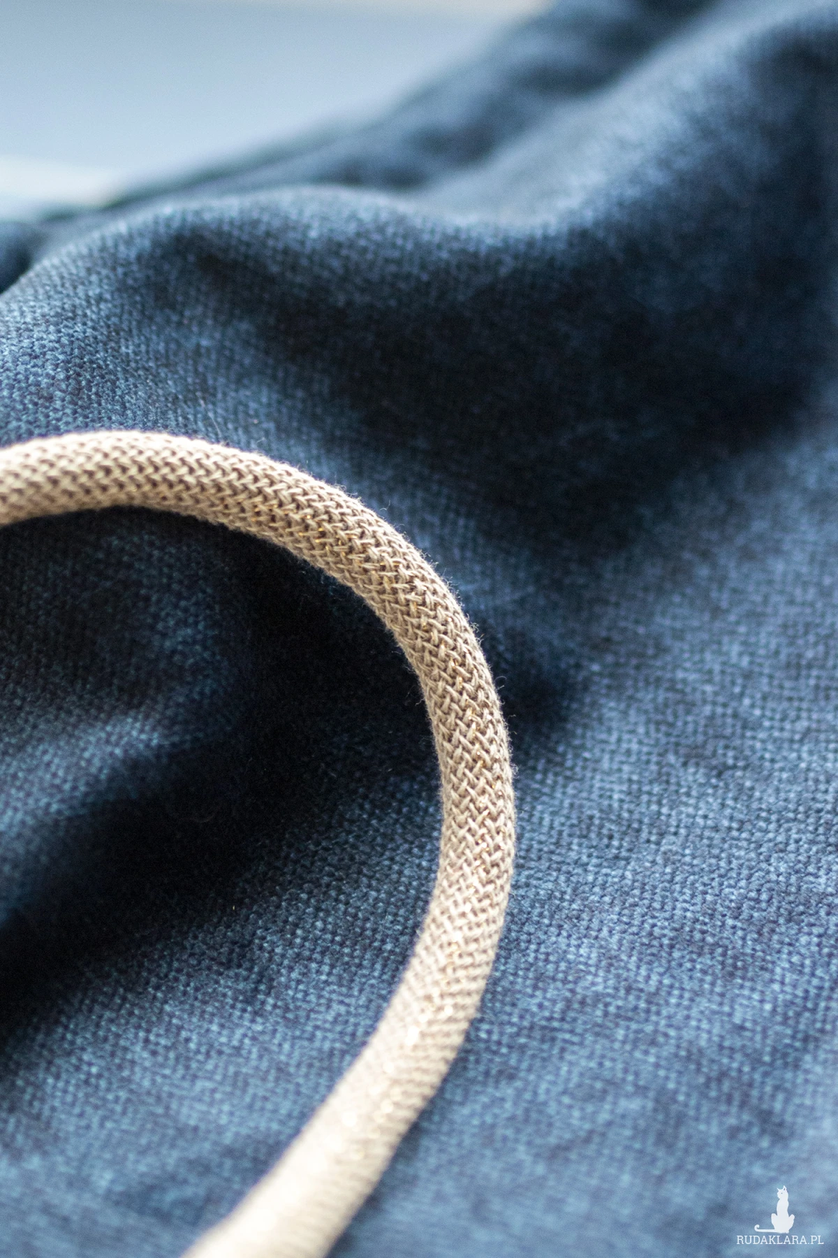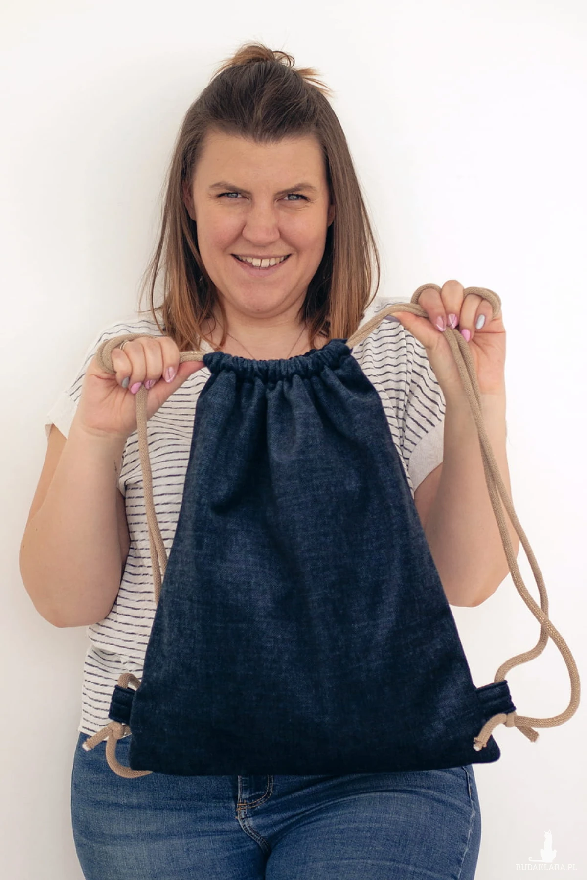 Plecak worek wykonany z weluru w kolorze granatowym.